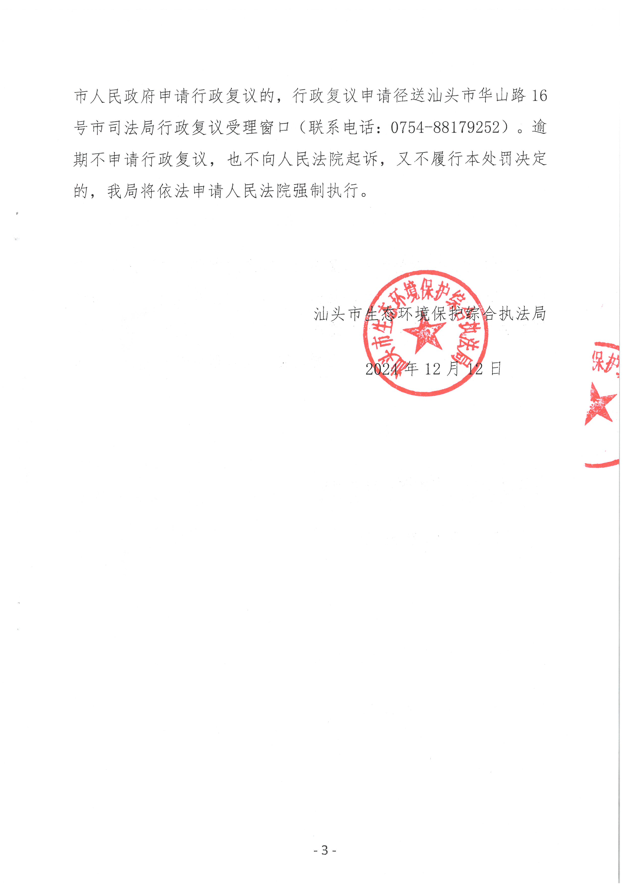 【金平】行政处罚决定书(汕环执罚〔2024〕197号)