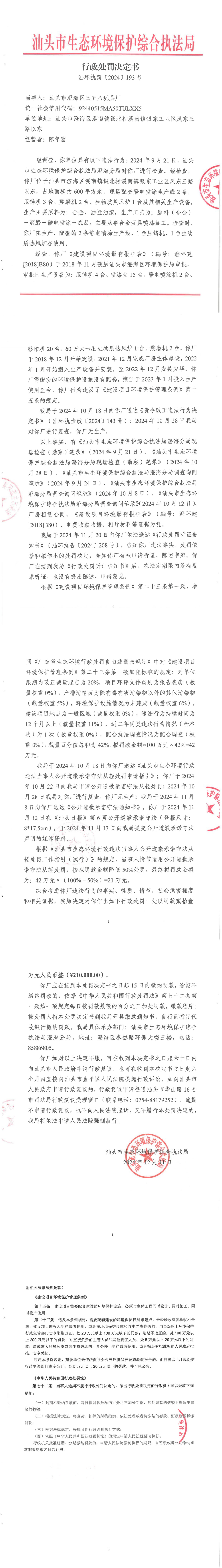【澄海】行政处罚决定书(汕环执罚〔2024〕193号)