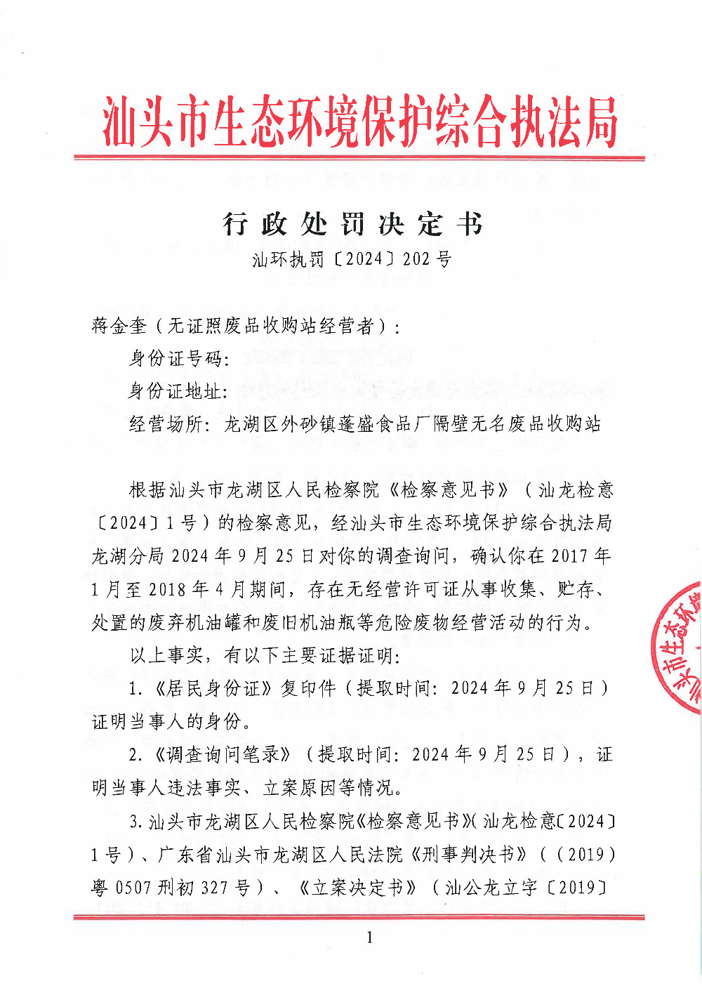 【龙湖】行政处罚决定书(汕环执罚〔2024〕202号)