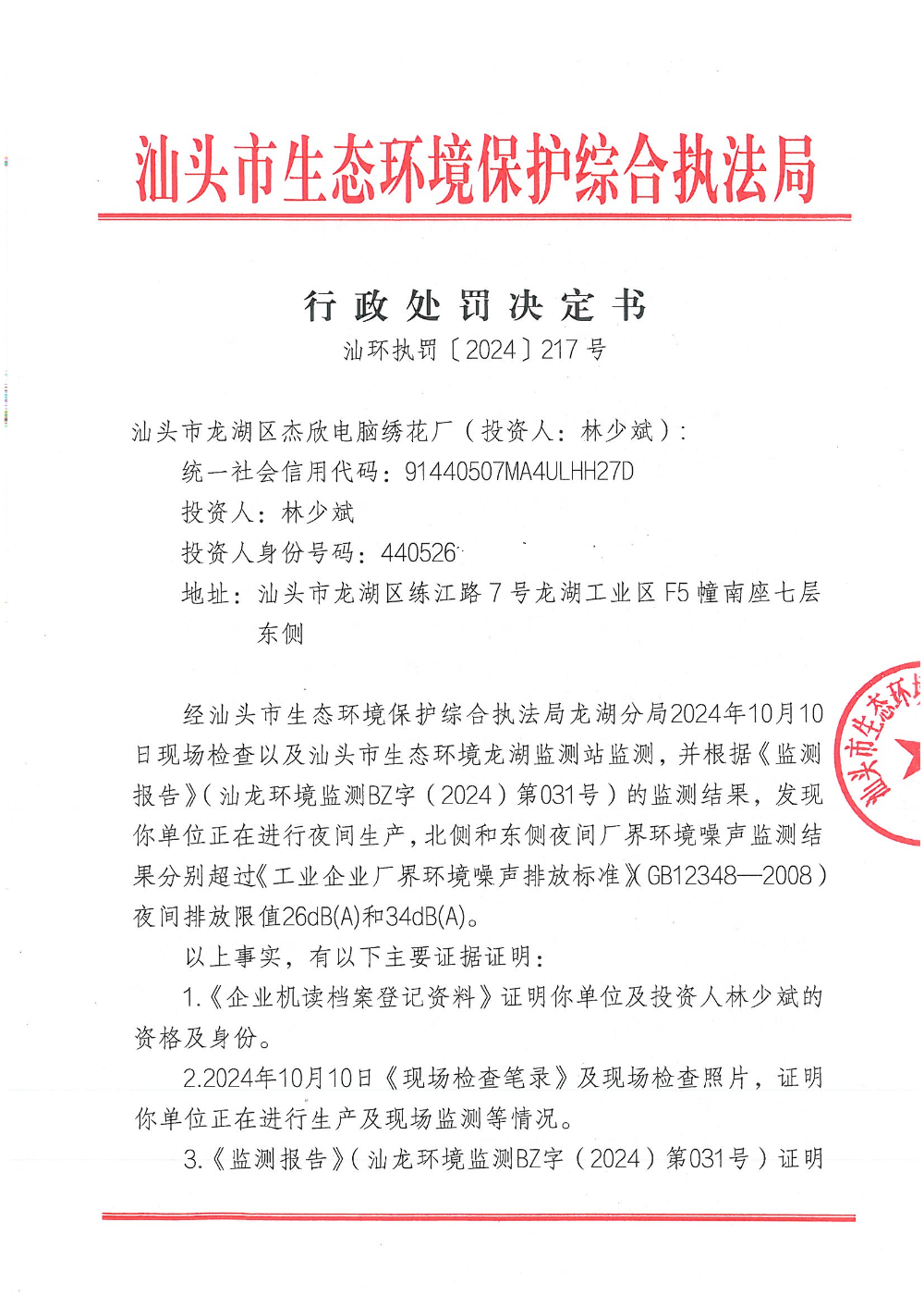 【龙湖】行政处罚决定书(汕环执罚〔2024〕217号)