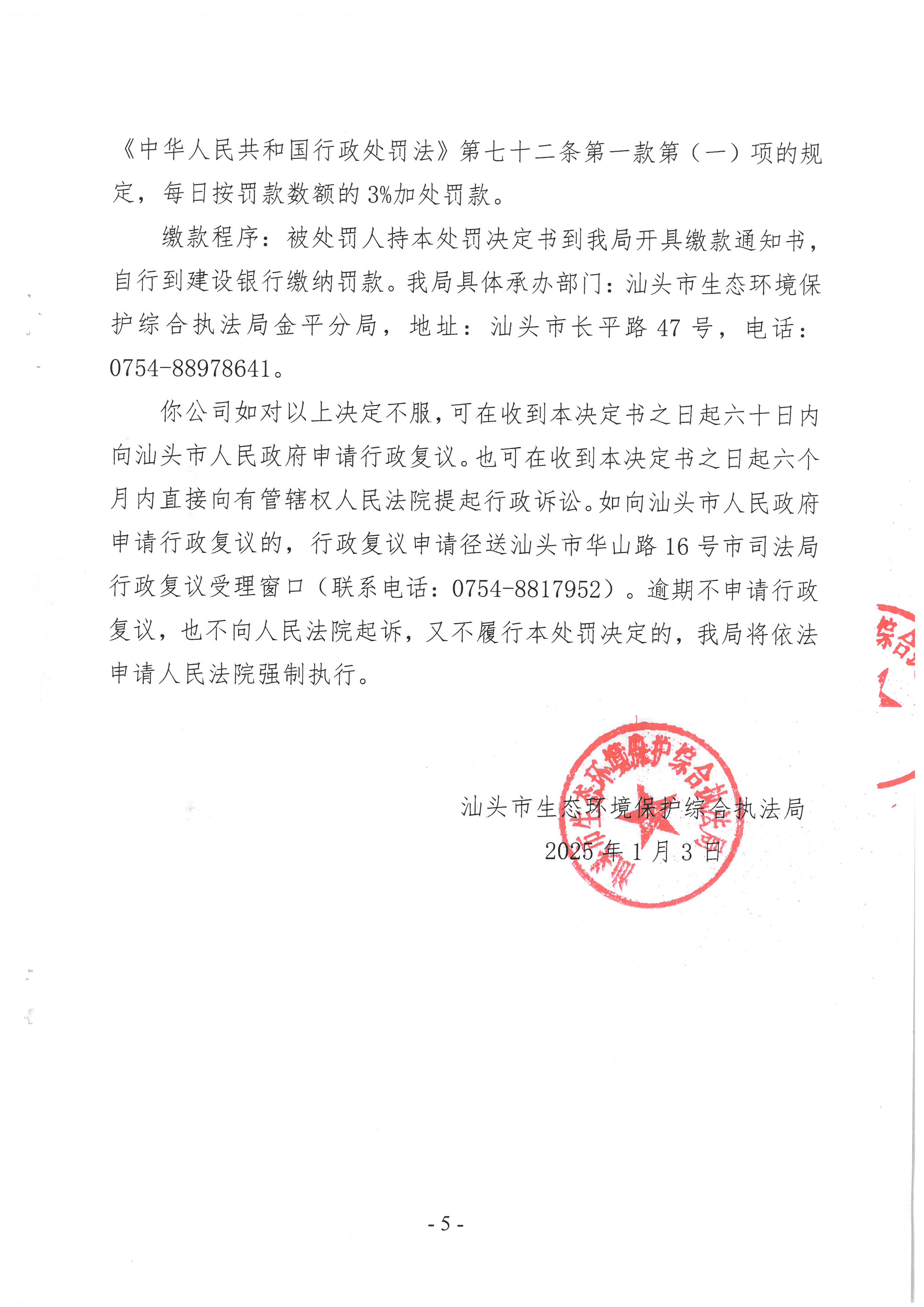 【金平】行政处罚决定书(汕环执罚〔2025〕2号)