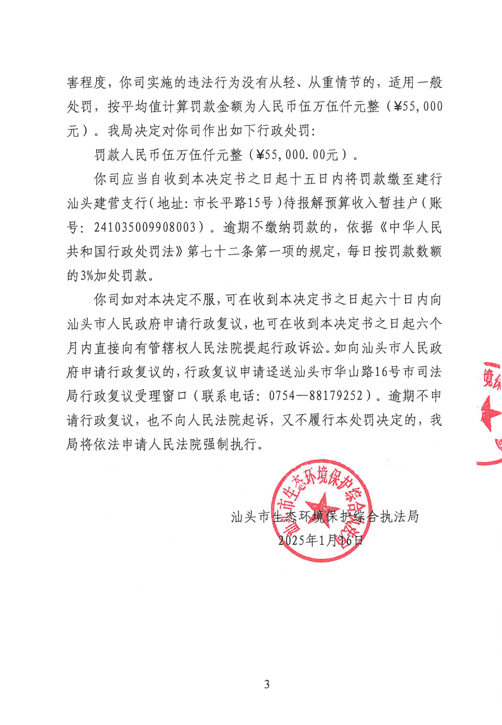 【龙湖】行政处罚决定书(汕环执罚〔2025〕20号)