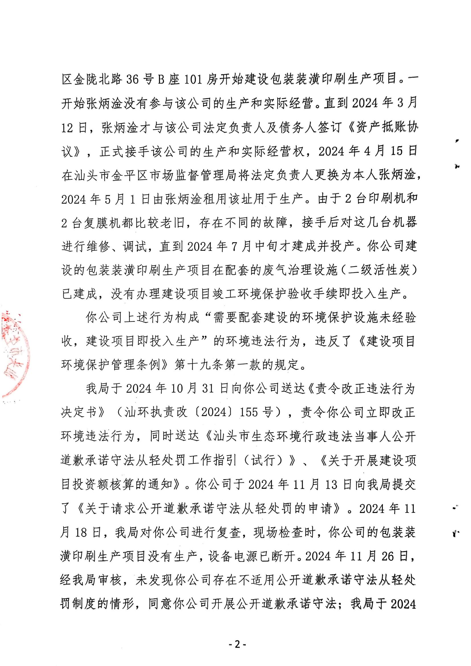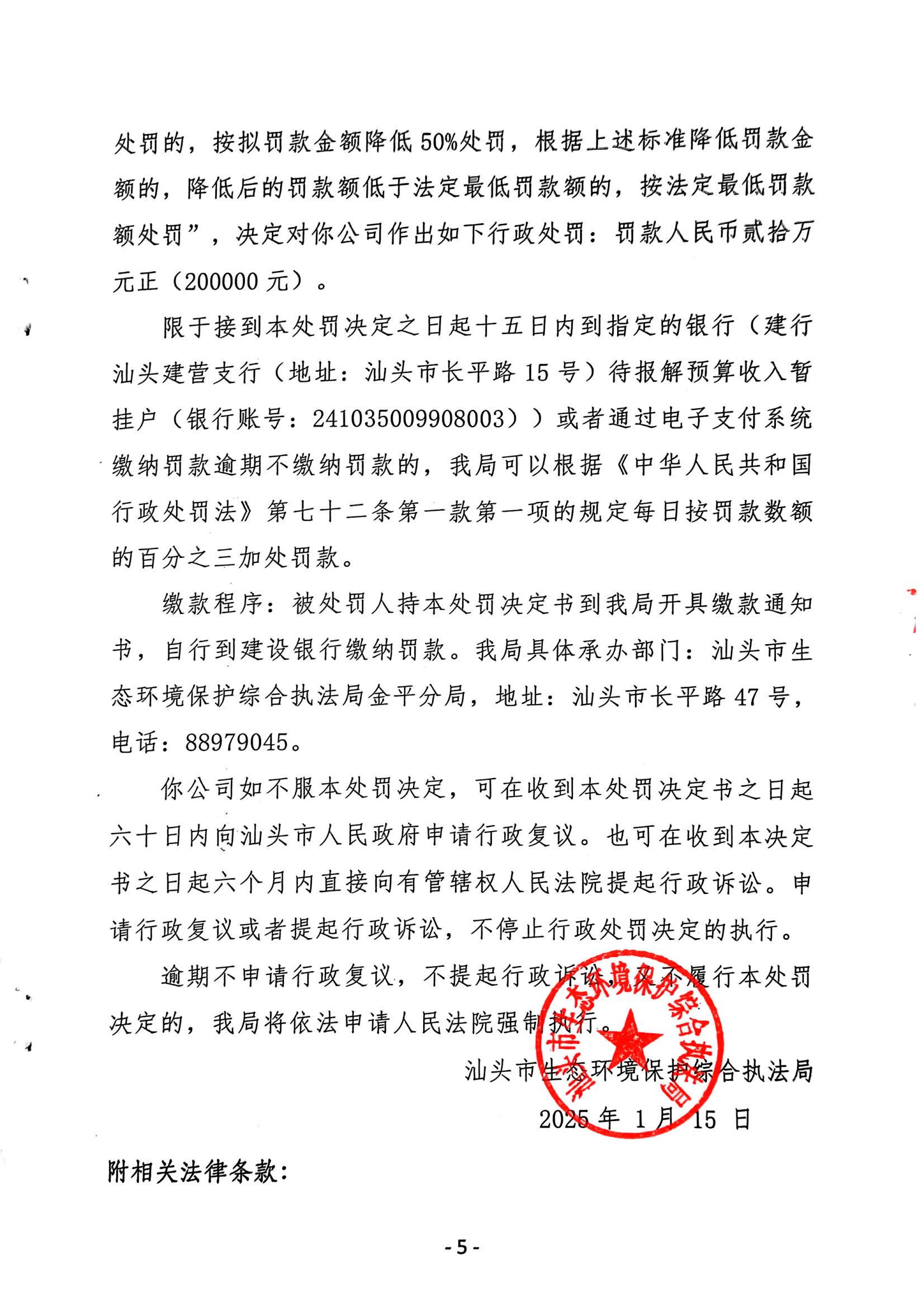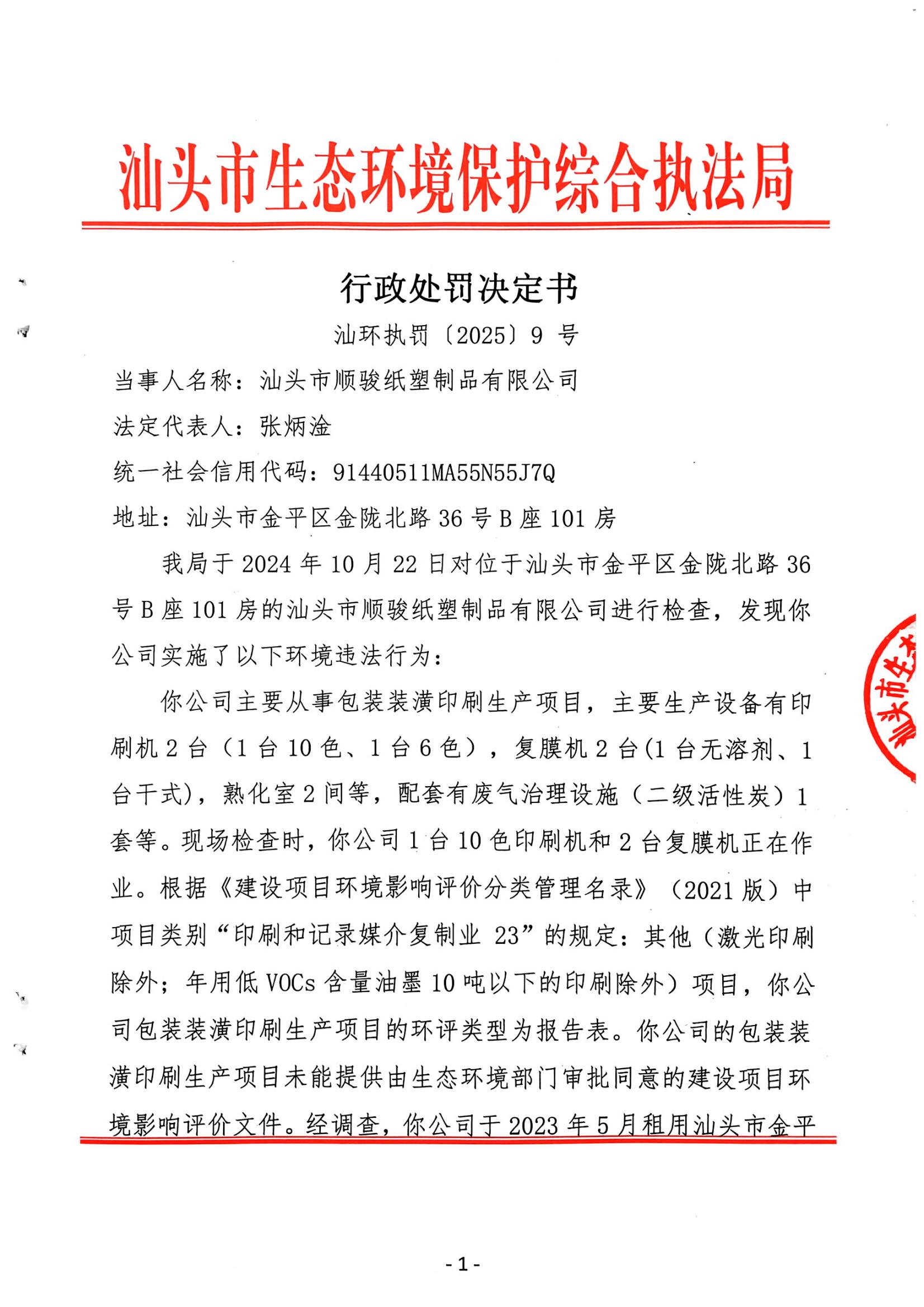 【金平】行政处罚决定书(汕环执罚〔2025〕9号)