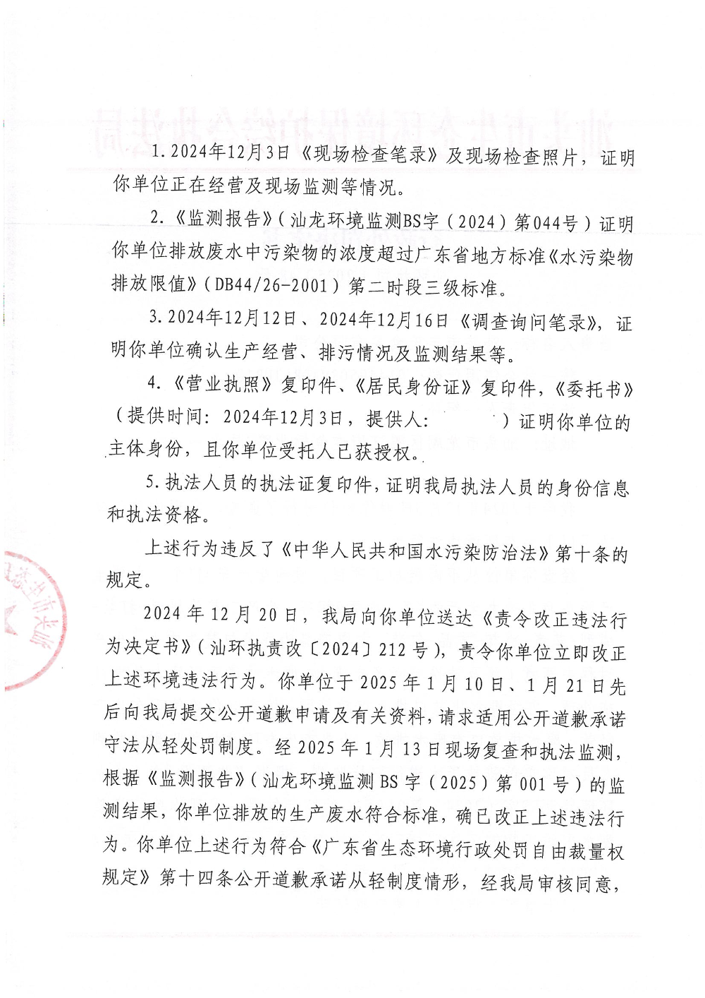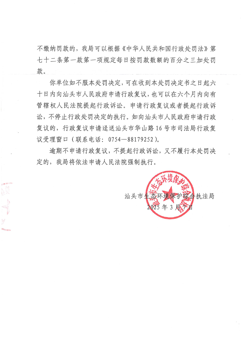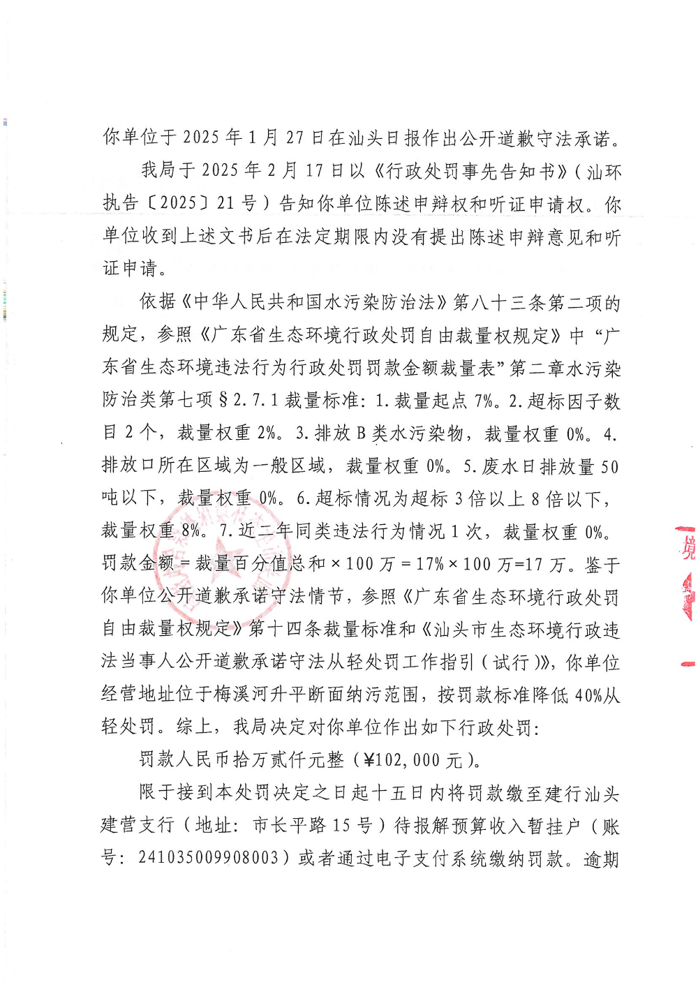 【龙湖】行政处罚决定书(汕环执罚〔2025〕48号)