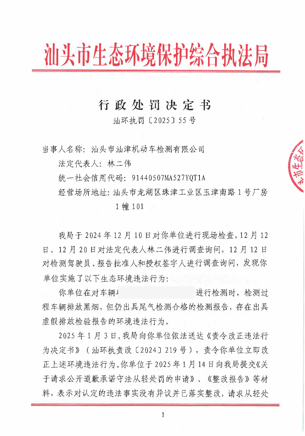 【龙湖】行政处罚决定书(汕环执罚〔2025〕55号)