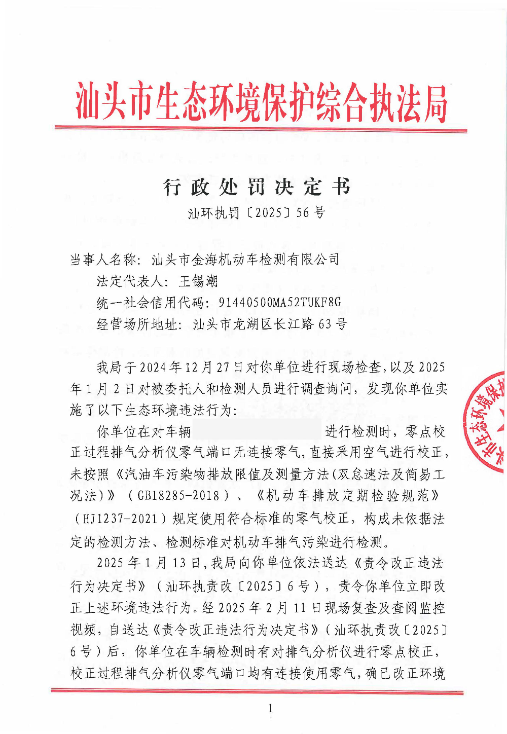 【龙湖】行政处罚决定书(汕环执罚〔2025〕56号)