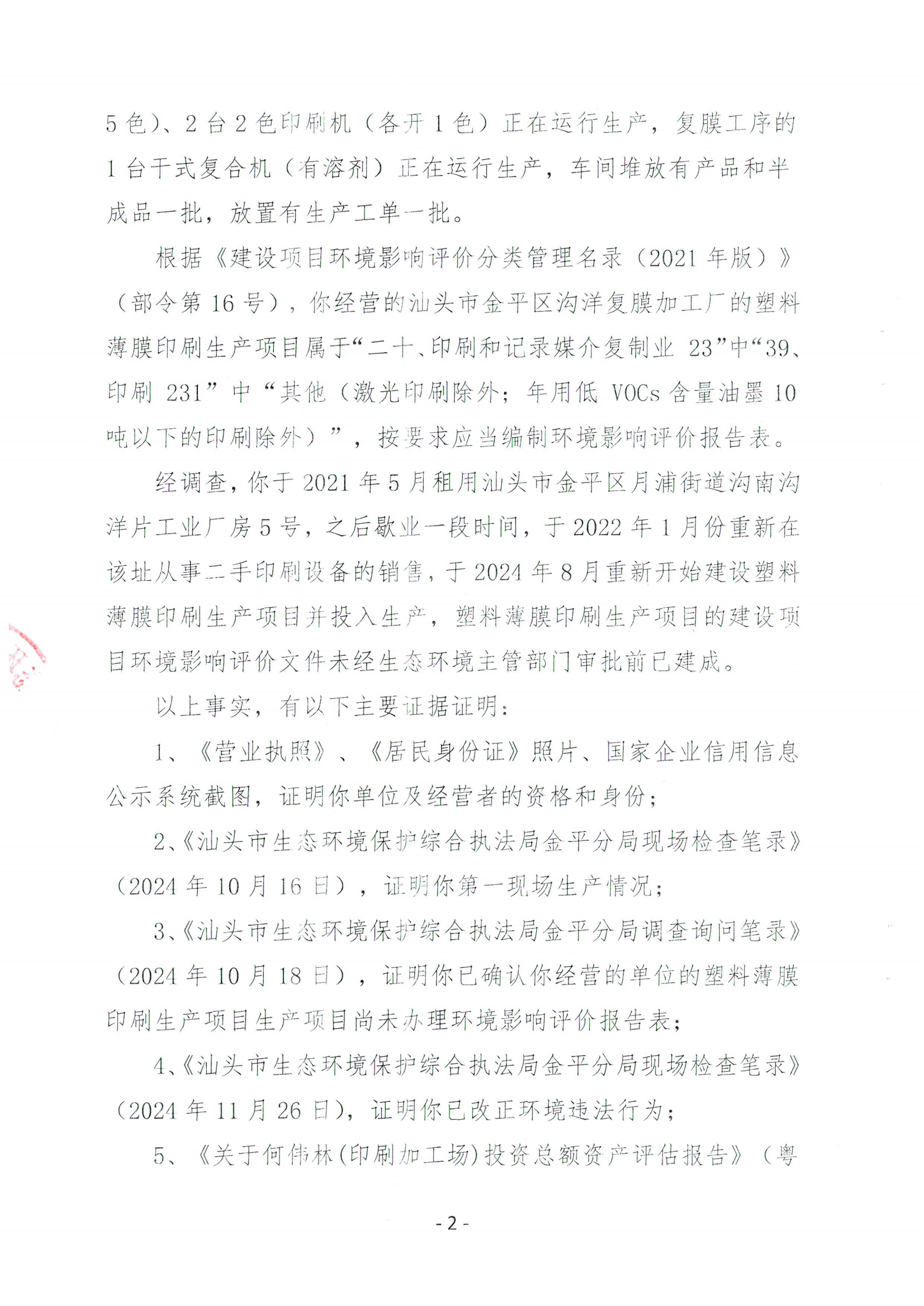 【金平】行政处罚决定书(汕环执罚〔2025〕69号)