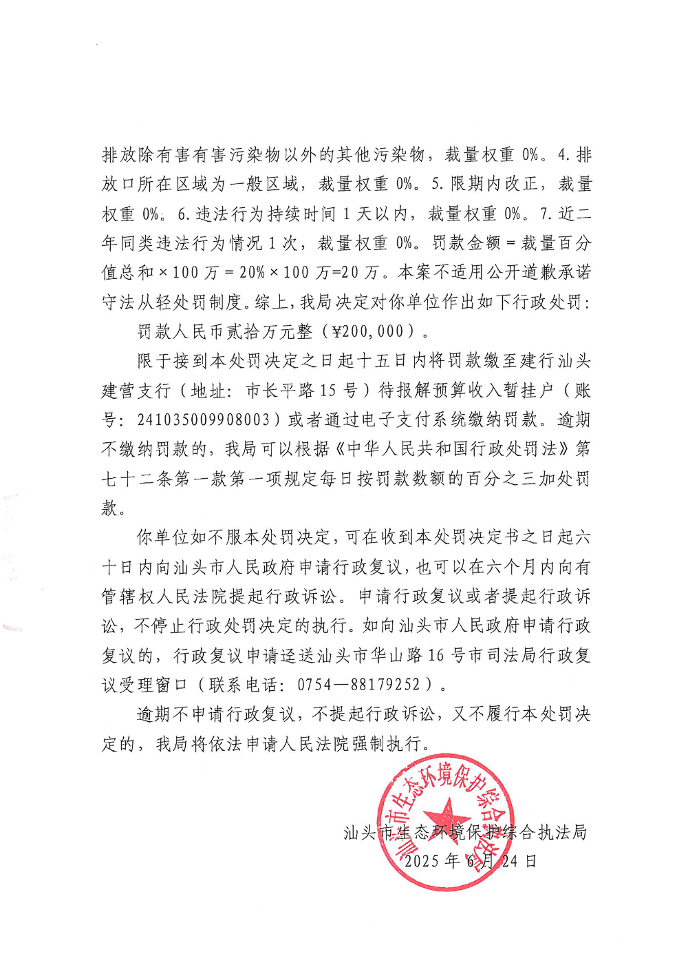 【龙湖】行政处罚决定书(汕环执罚〔2025〕75号)