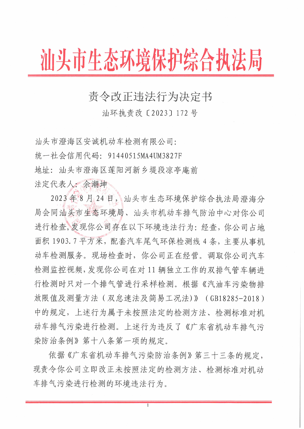 【澄海】责令改正违法行为决定书(汕环执责改〔2023〕172号)