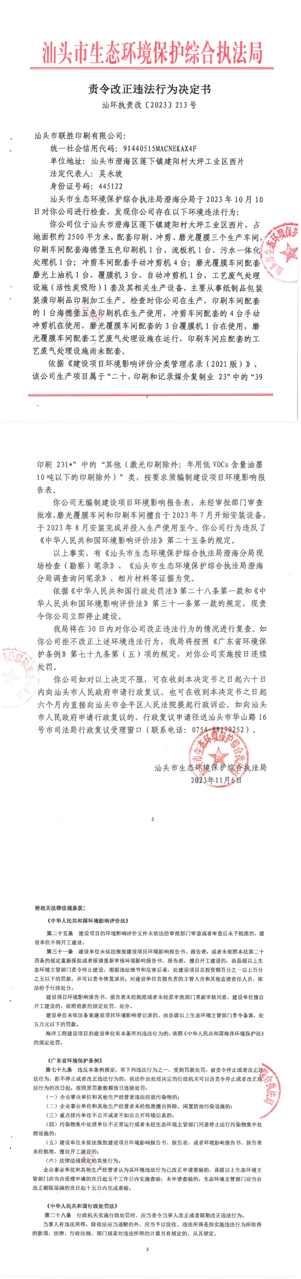【澄海】责令改正违法行为决定书(汕环执责改〔2023〕213号)