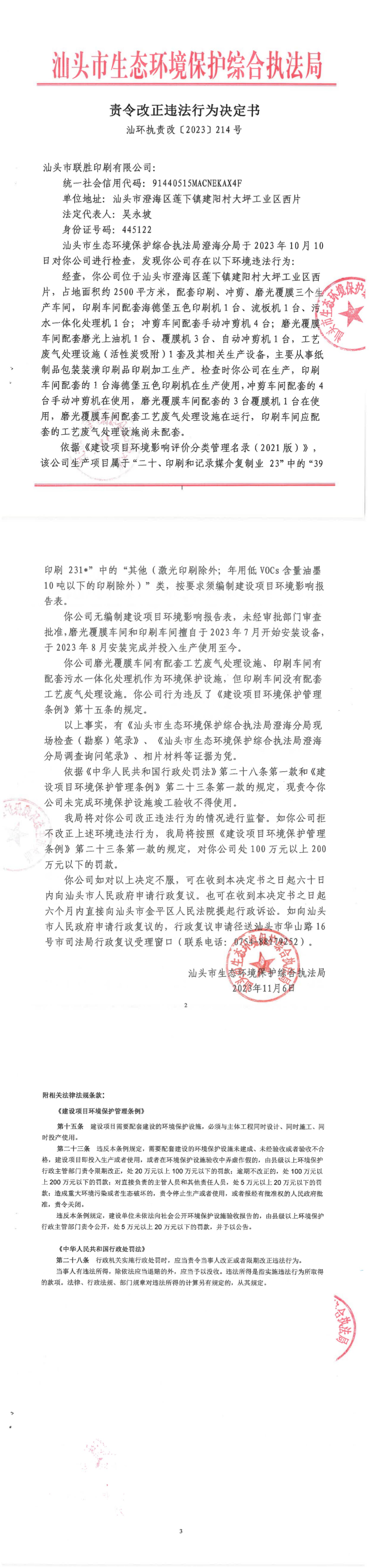 【澄海】责令改正违法行为决定书(汕环执责改〔2023〕214号)