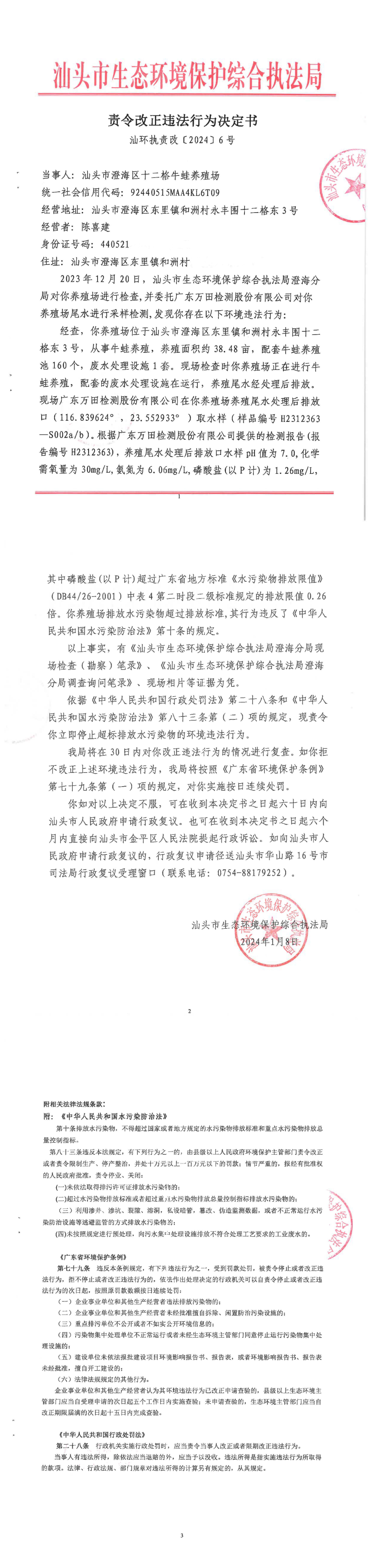 【澄海】责令改正违法行为决定书(汕环执责改〔2024〕6号)