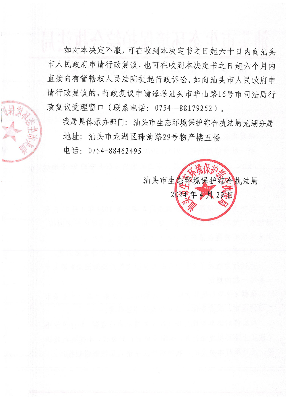 【龙湖】责令改正违法行为决定书(汕环执责改〔2024〕47号)