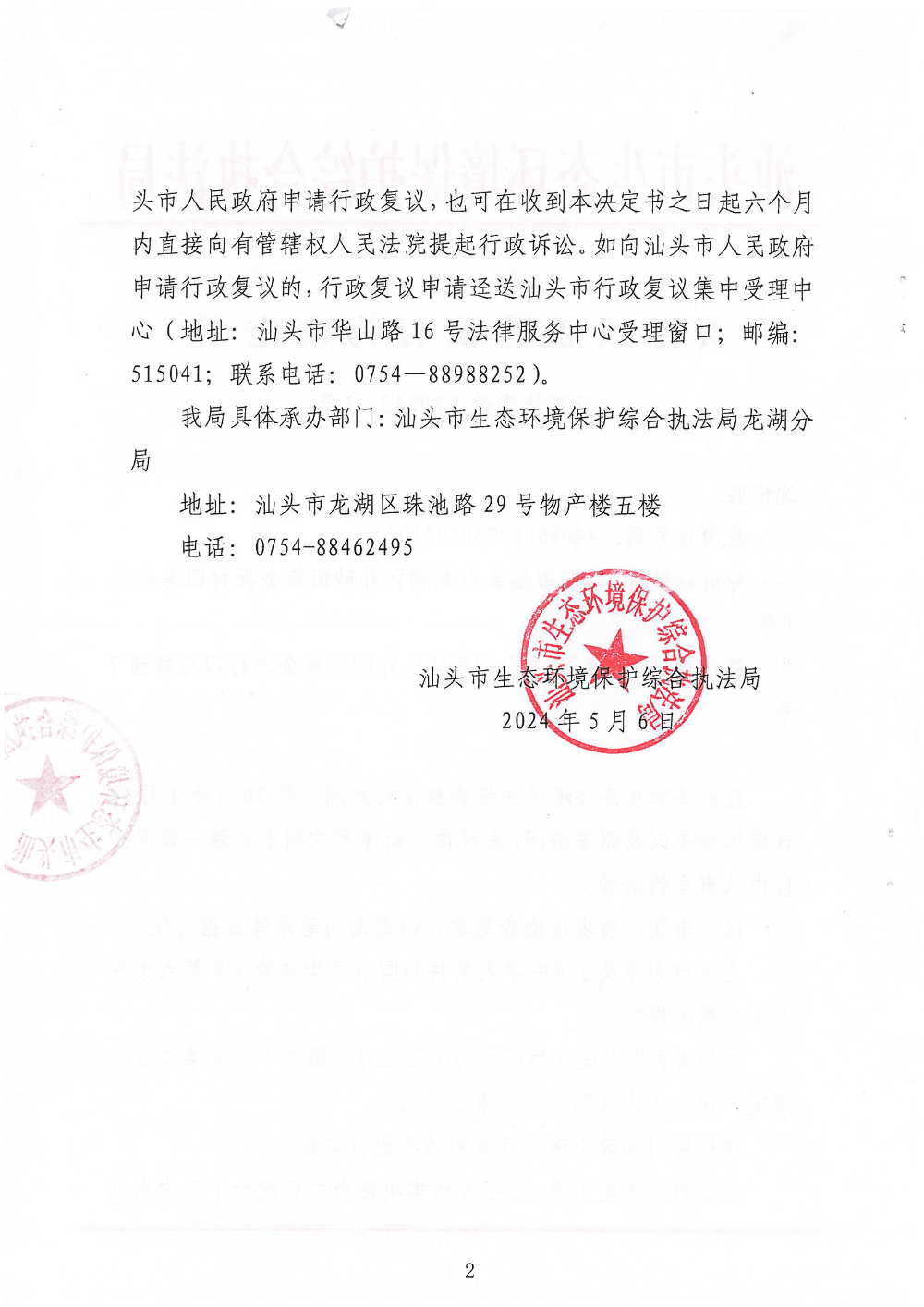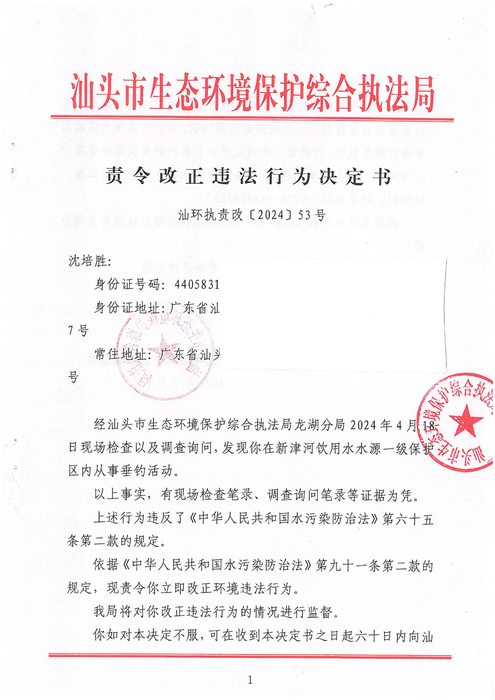 【龙湖】责令改正违法行为决定书(汕环执责改〔2024〕53号)