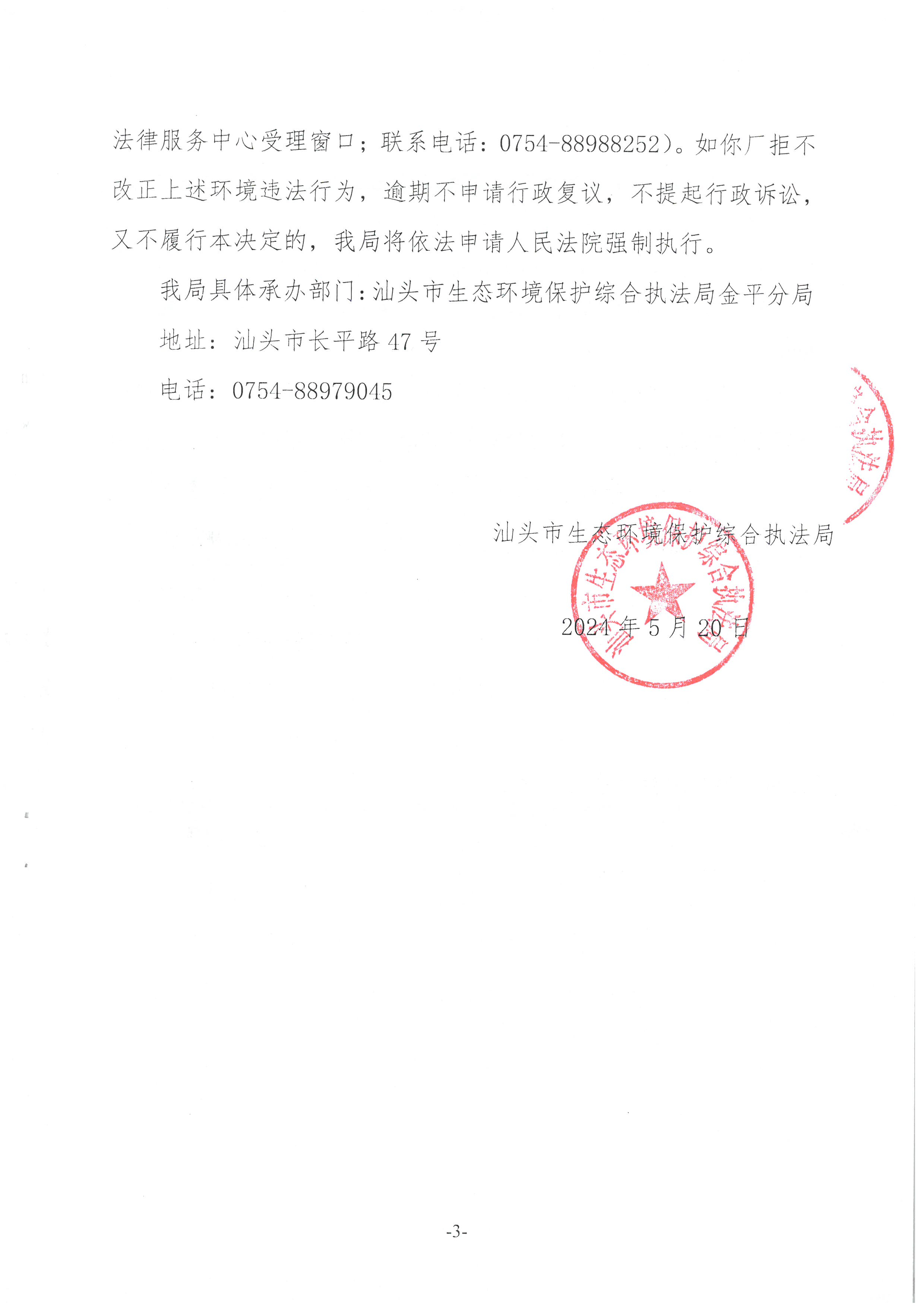 【金平】 责令改正违法行为决定书(汕环执责改〔2024〕60号)