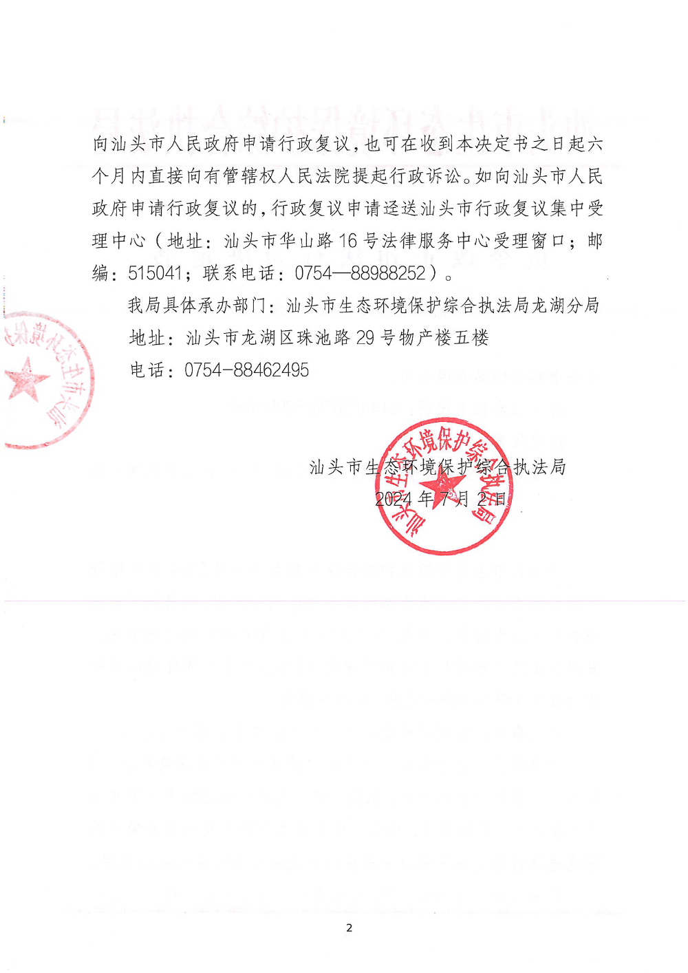 【龙湖】责令改正违法行为决定书(汕环执责改〔2024〕81号)