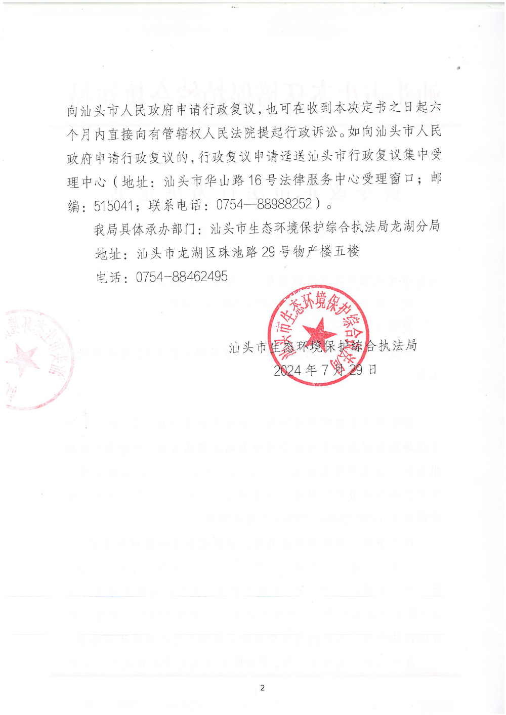 【龙湖】责令改正违法行为决定书(汕环执责改〔2024〕99号)