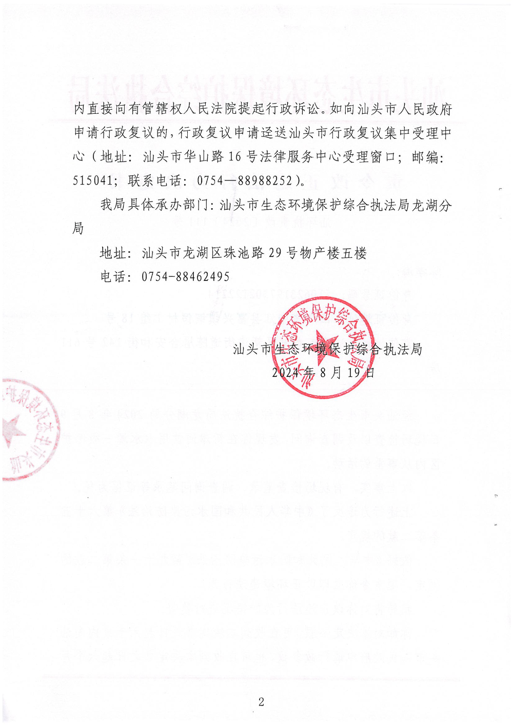 【龙湖】责令改正违法行为决定书(汕环执责改〔2024〕111号)