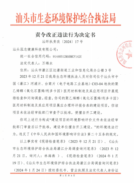 【濠江】责令改正违法行为决定书(汕环执责改〔2024〕17号)