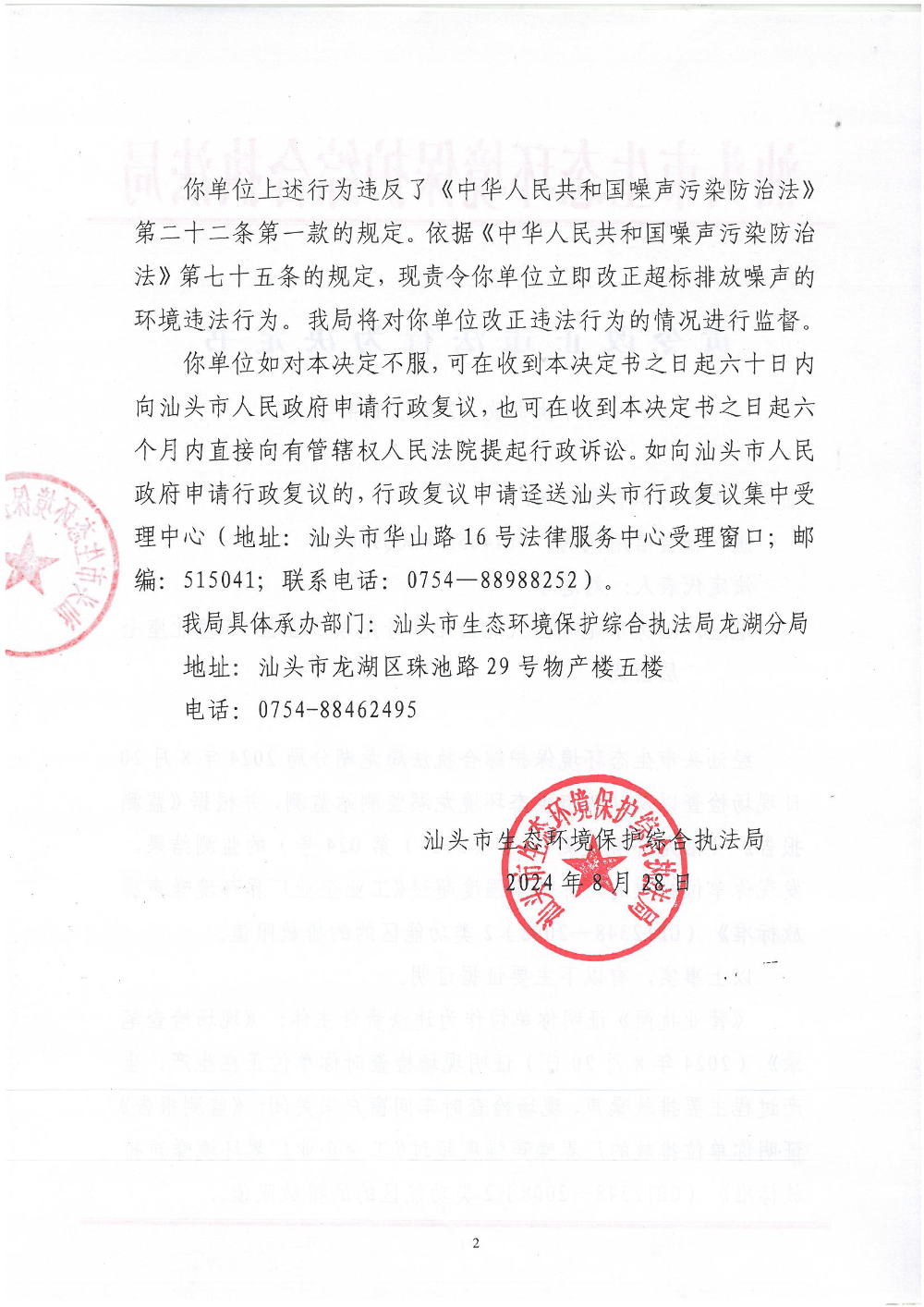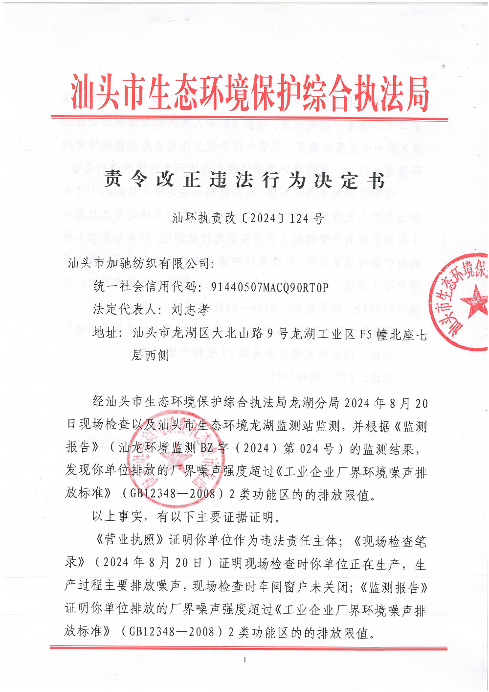 【龙湖】责令改正违法行为决定书(汕环执责改〔2024〕124号)