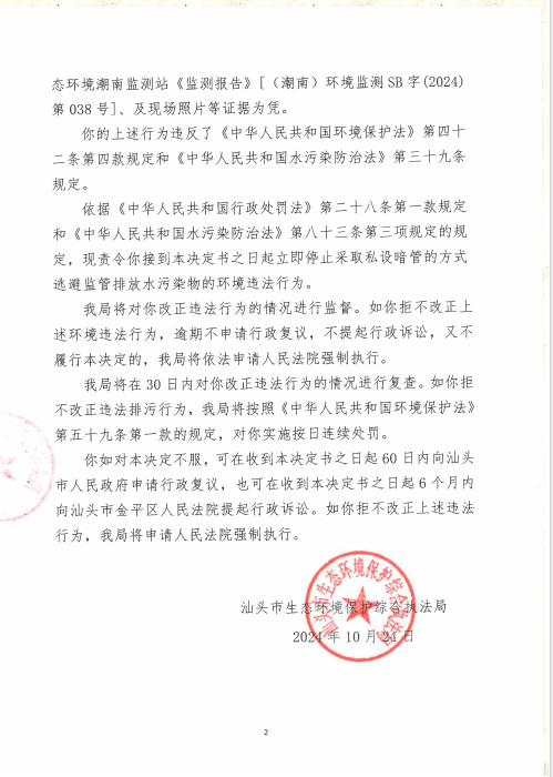 【潮南】责令改正违法行为决定书(汕环执责改〔2024〕151号)