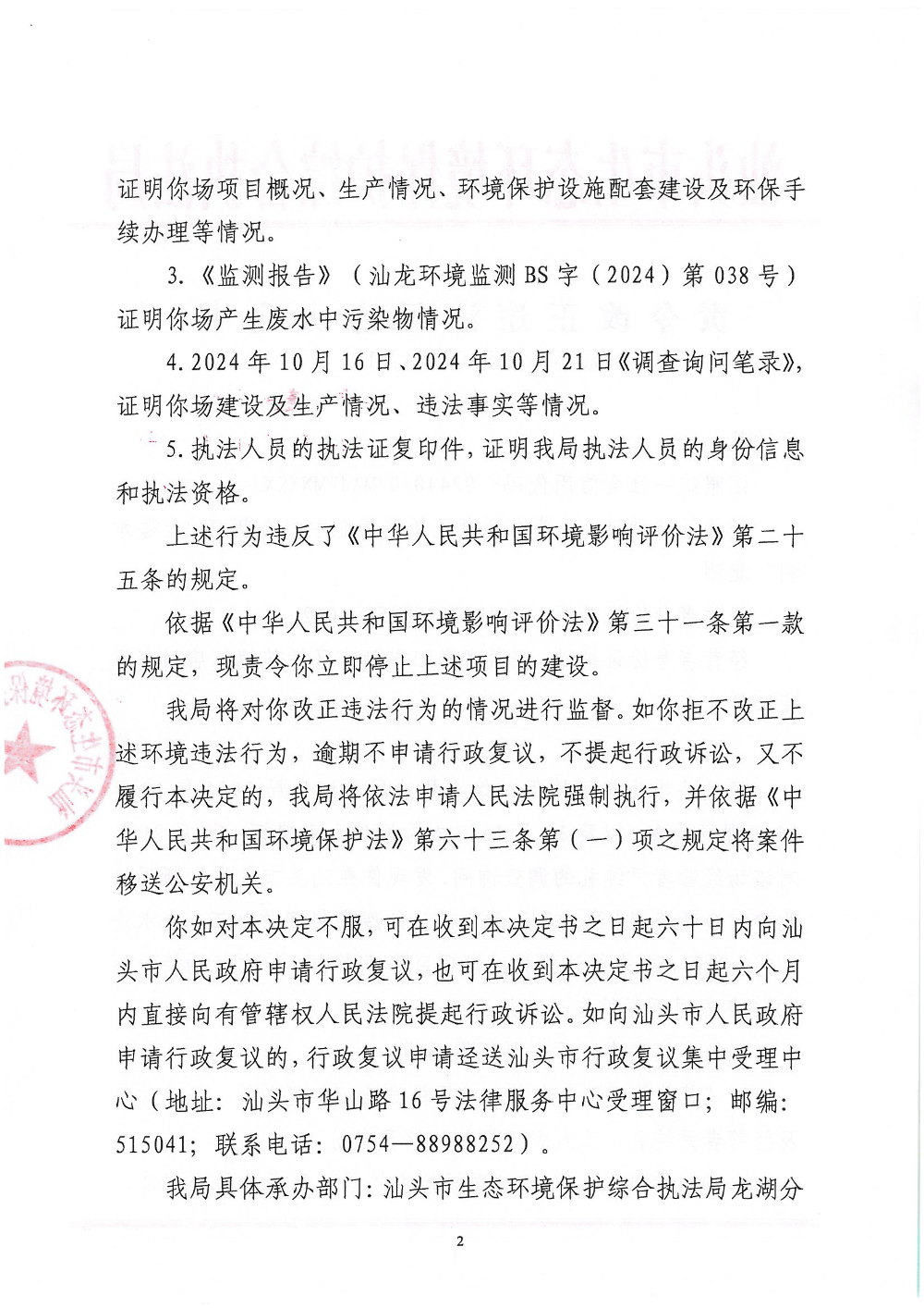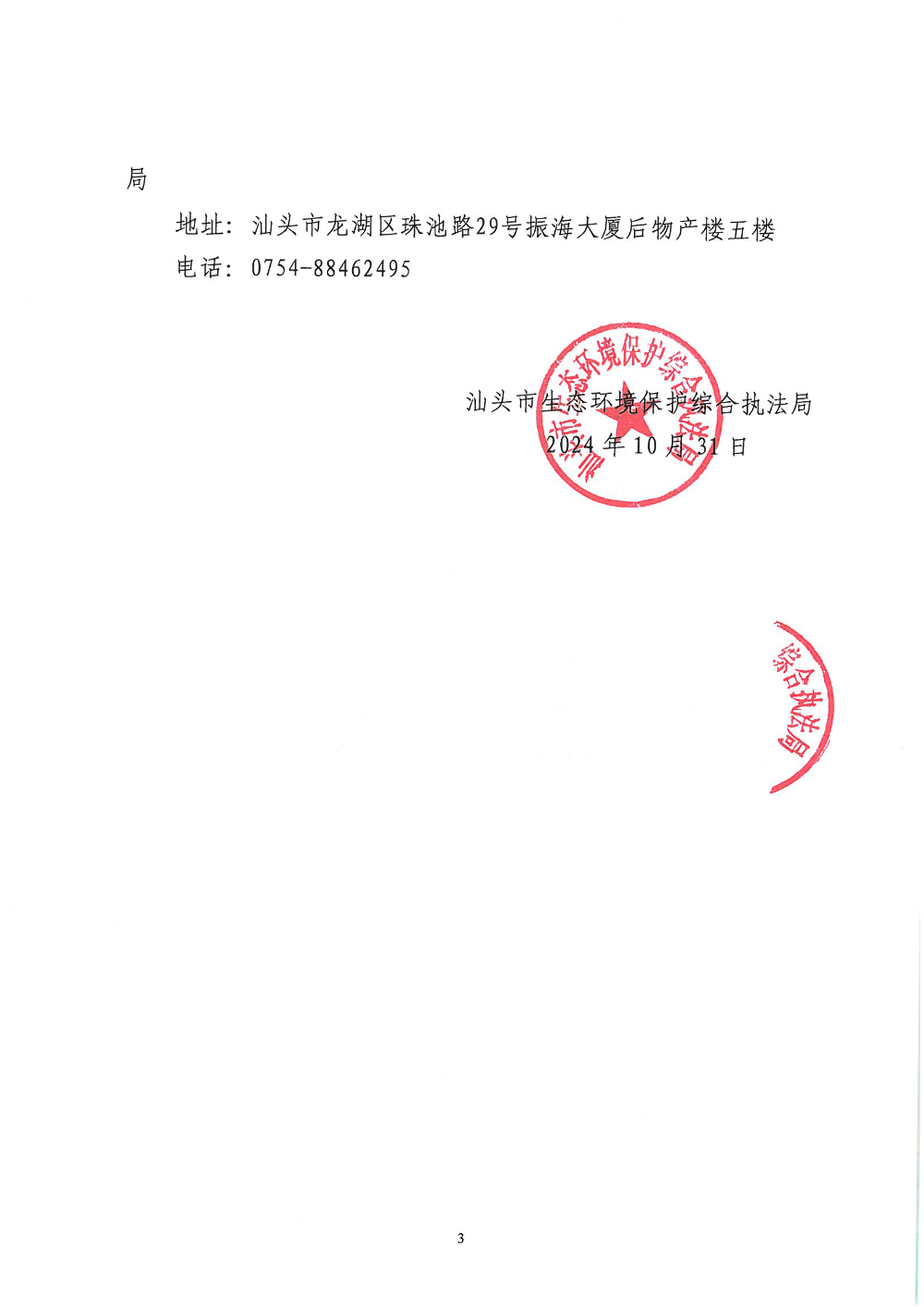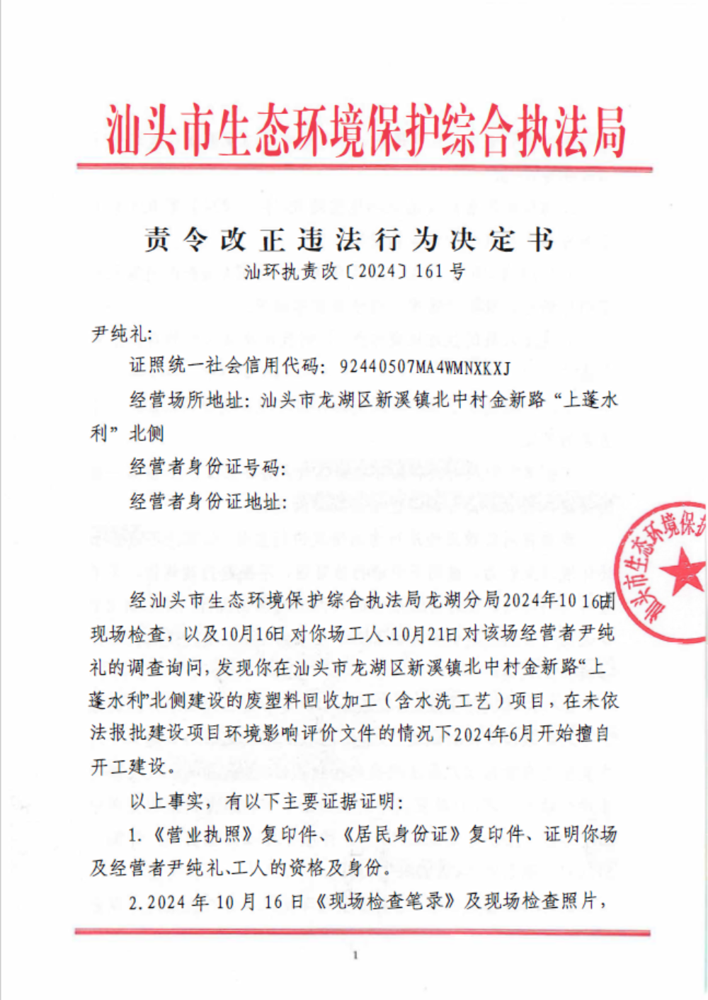 【龙湖】责令改正违法行为决定书(汕环执责改〔2024〕161号)
