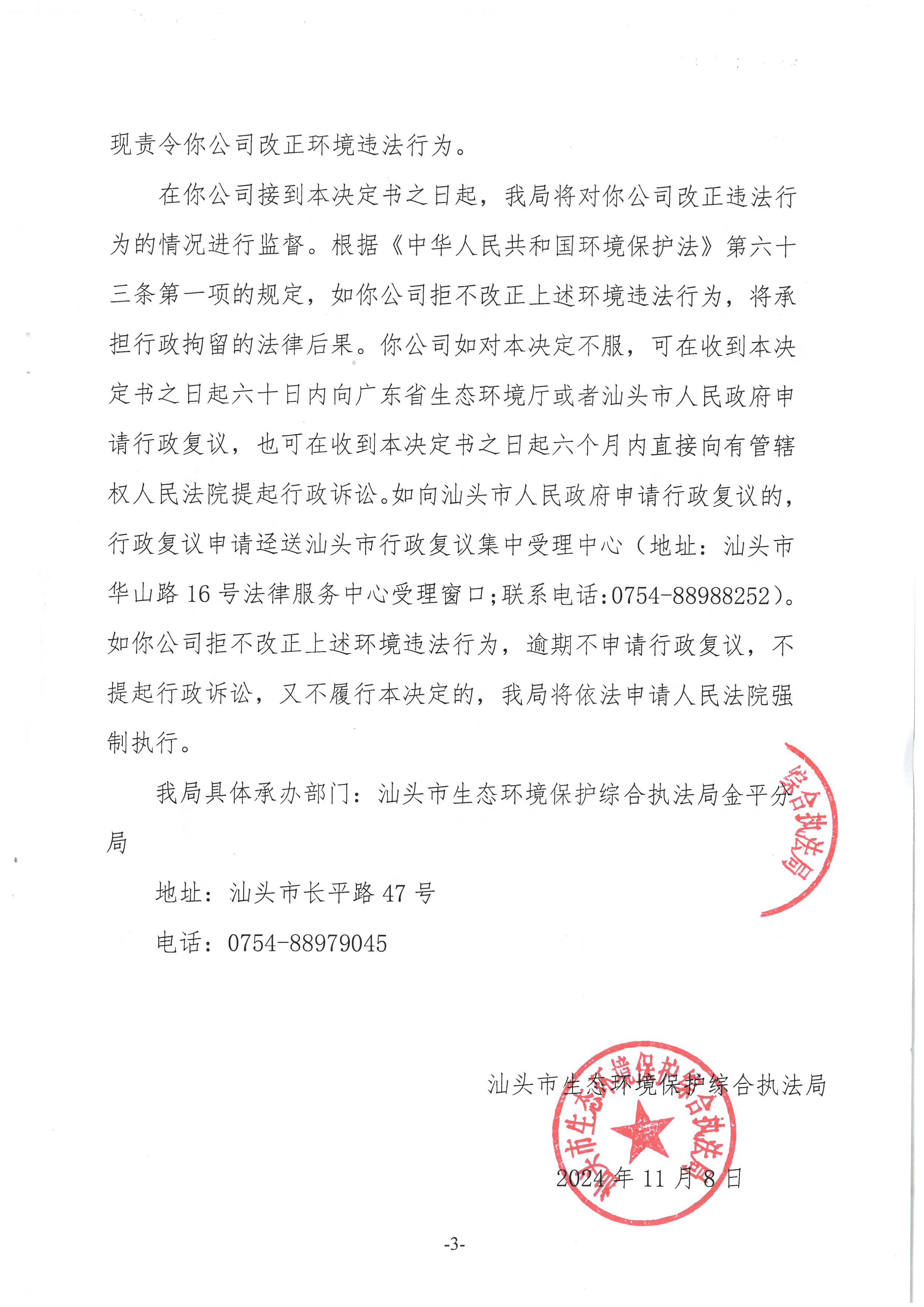 【金平】责令改正违法行为决定书(汕环执责改〔2024〕173号)