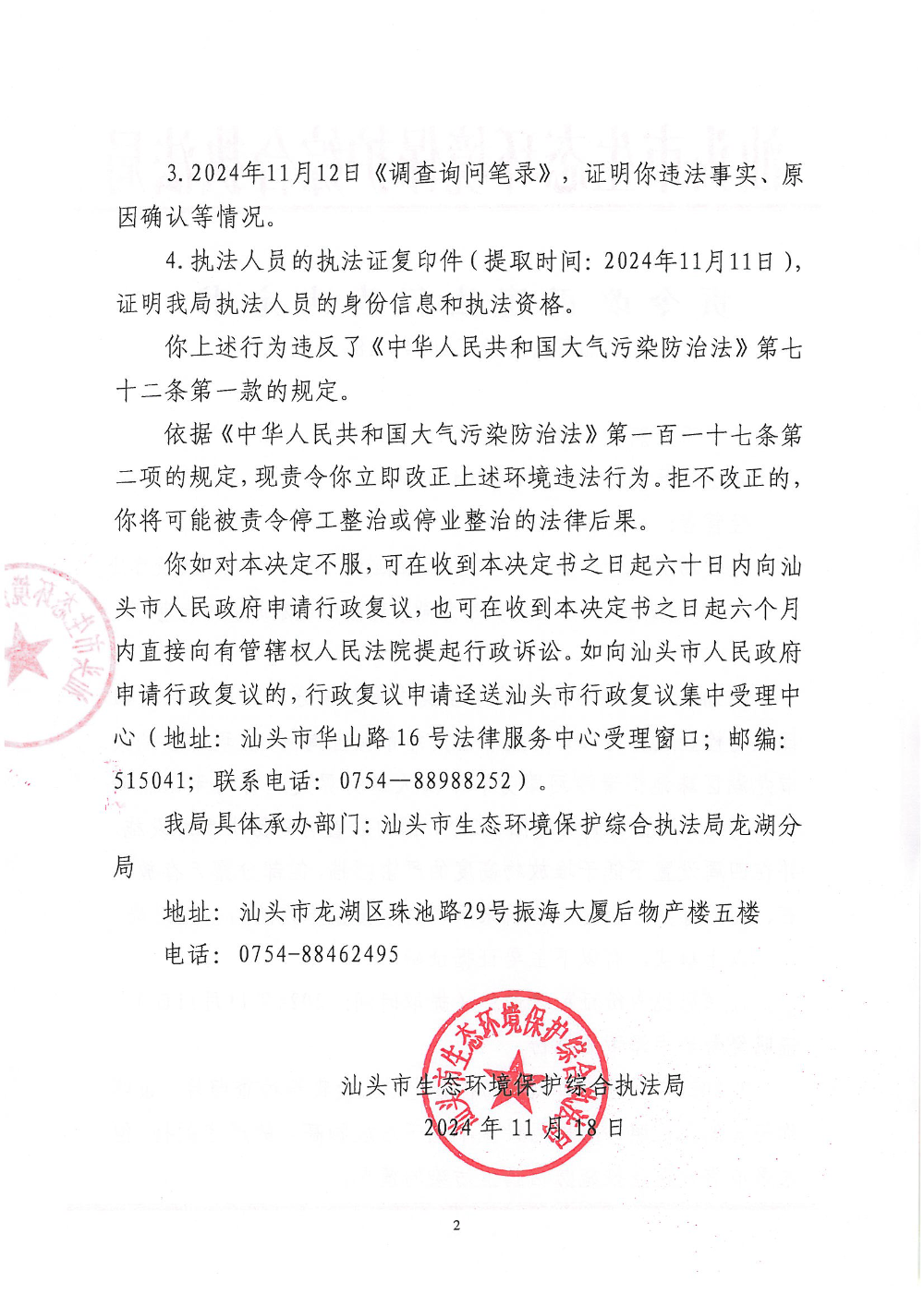 【龙湖】责令改正违法行为决定书(汕环执责改〔2024〕183号)