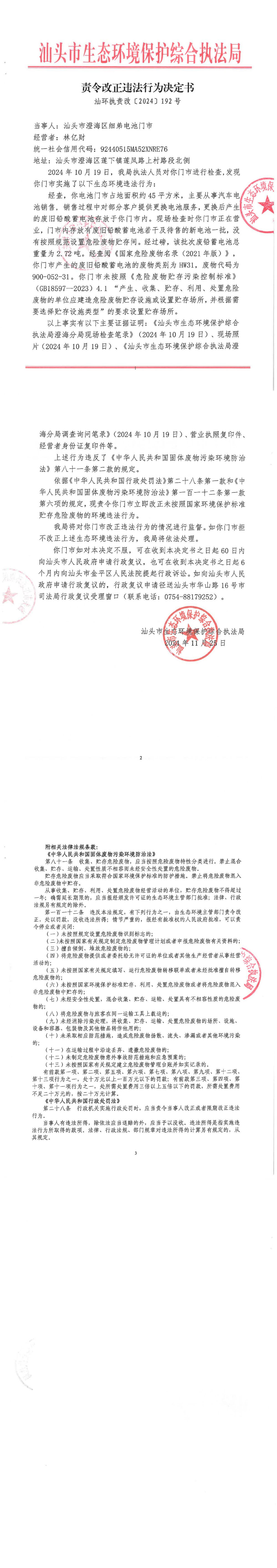 【澄海】责令改正违法行为决定书(汕环执责改〔2024〕192号)