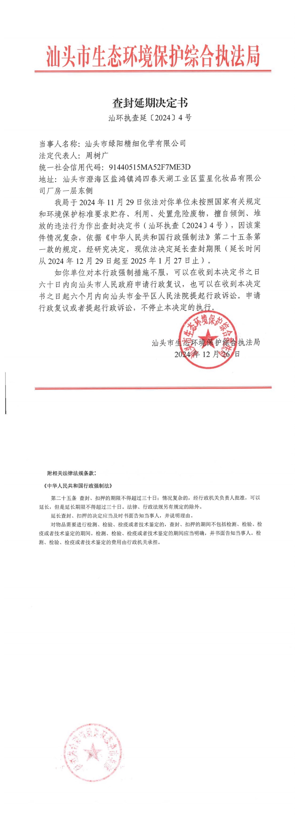 【澄海】查封延期决定书(汕环执查延〔2024〕4号)