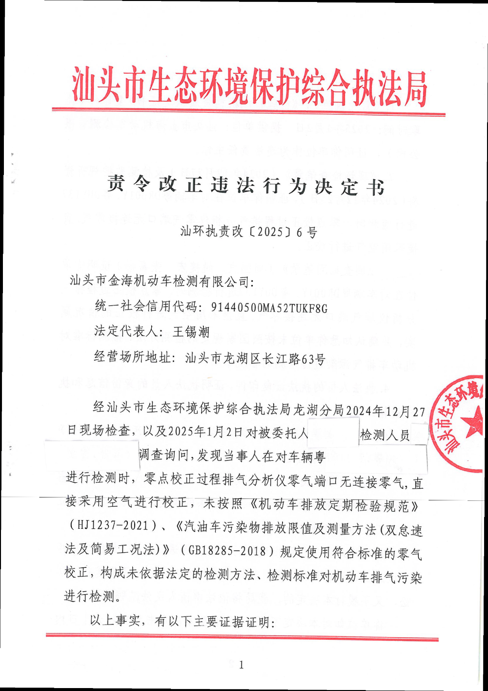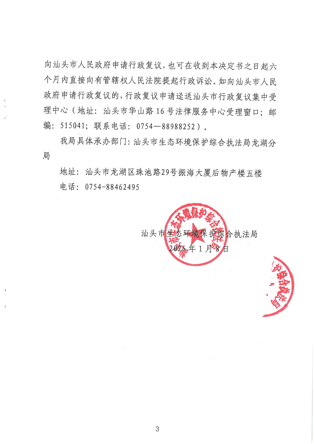 【龙湖】责令改正违法行为决定书(汕环执责改〔2025〕6号)
