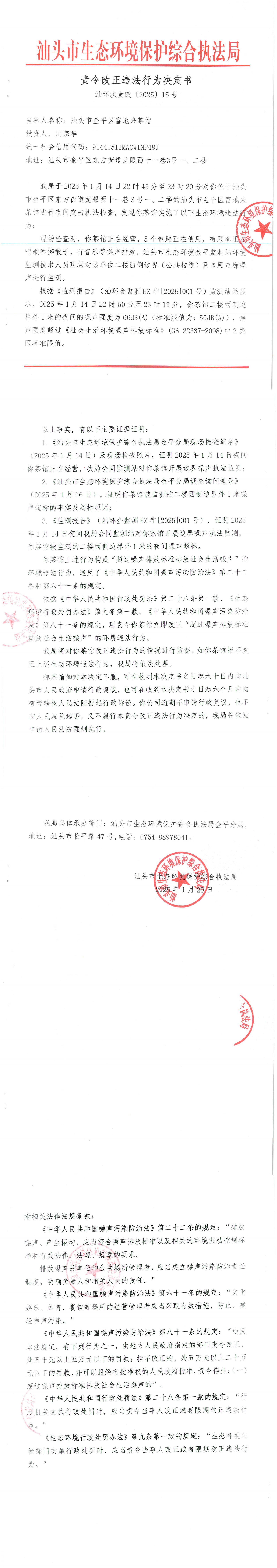【金平】责令改正违法行为决定书(汕环执责改〔2025〕15号)