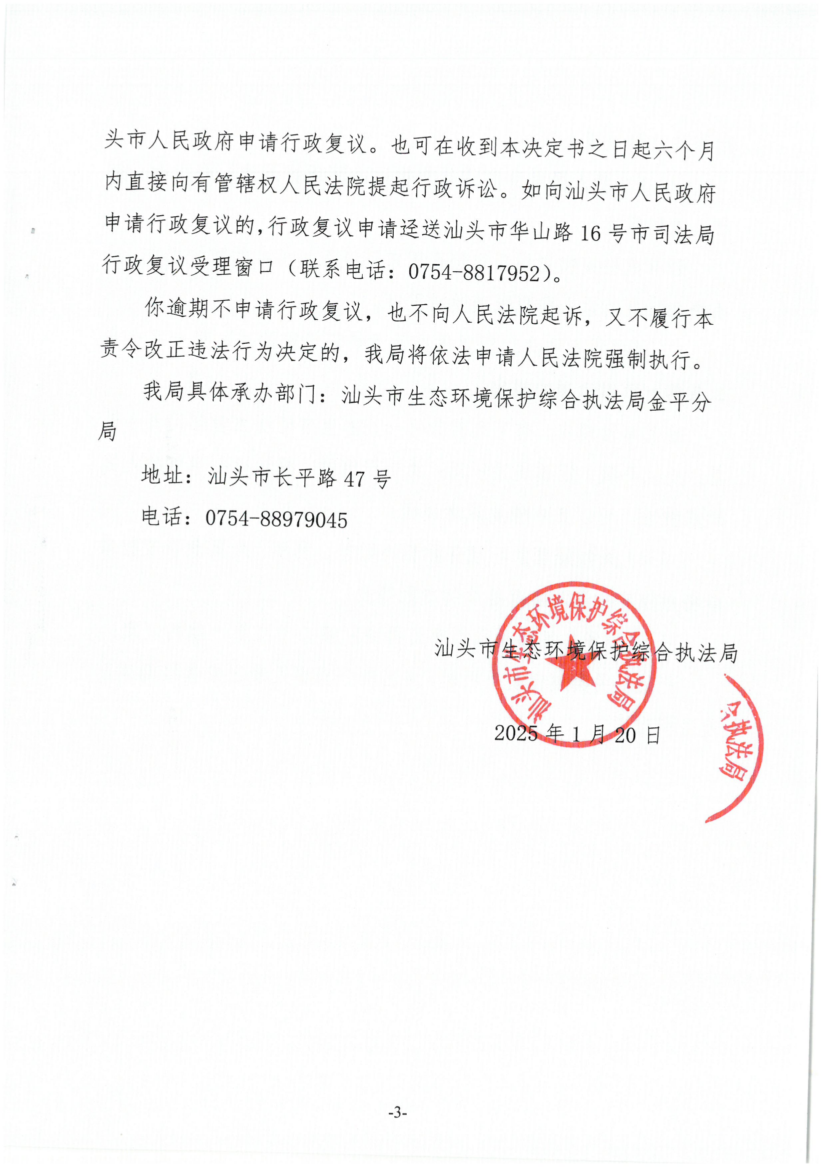 【金平】责令改正违法行为决定书(汕环执责改〔2025〕16号)