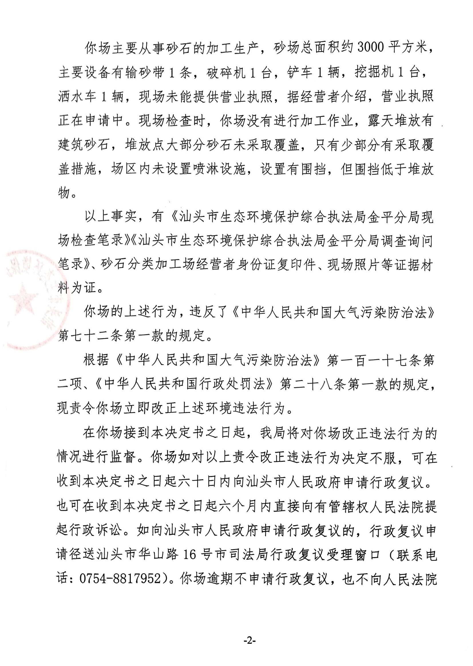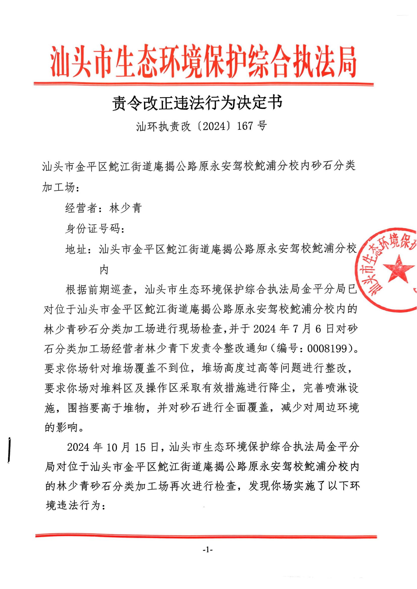 【金平】责令改正违法行为决定书(汕环执责改〔2024〕167号)