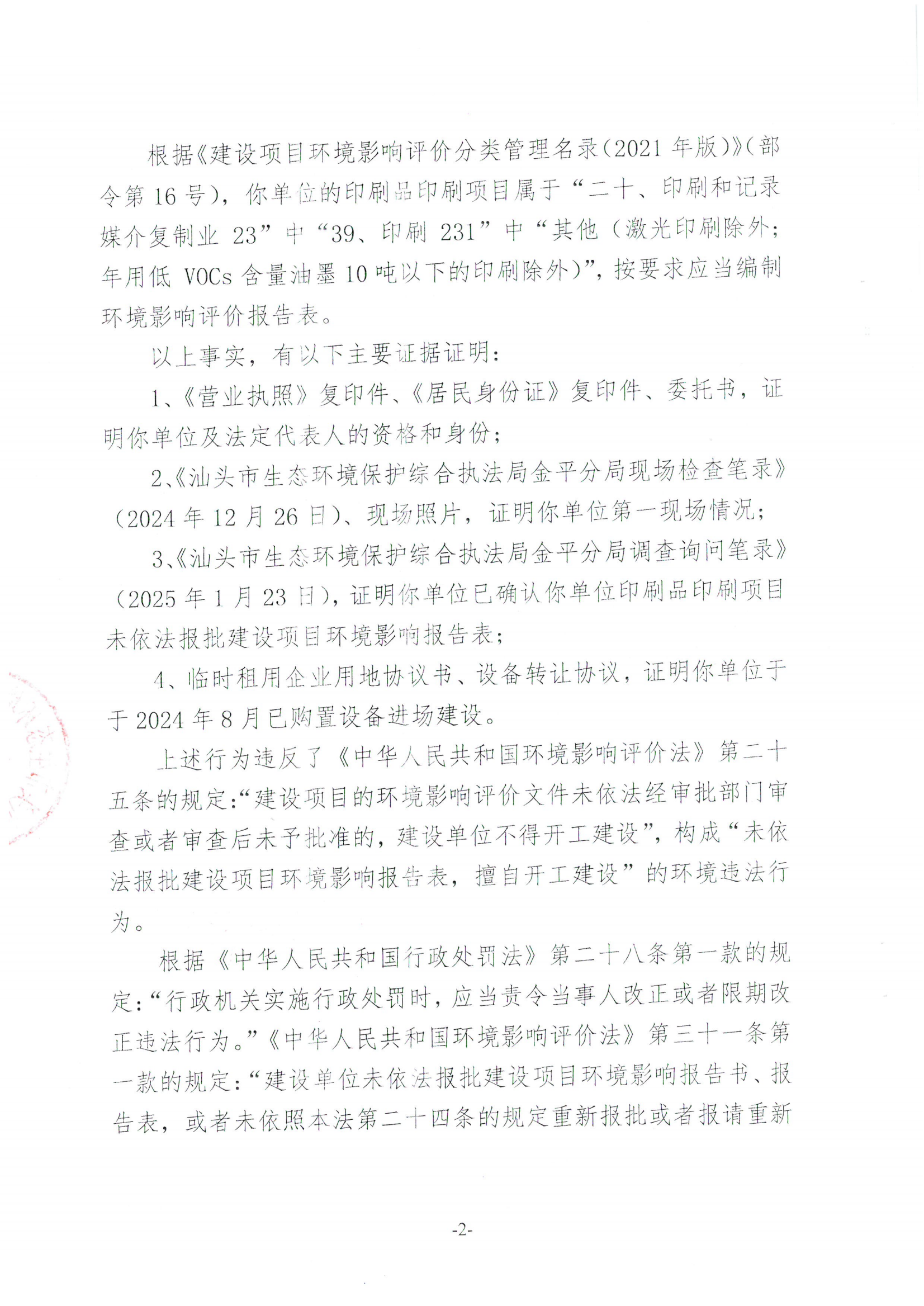 【金平】责令改正违法行为决定书(汕环执责改〔2025〕26号)