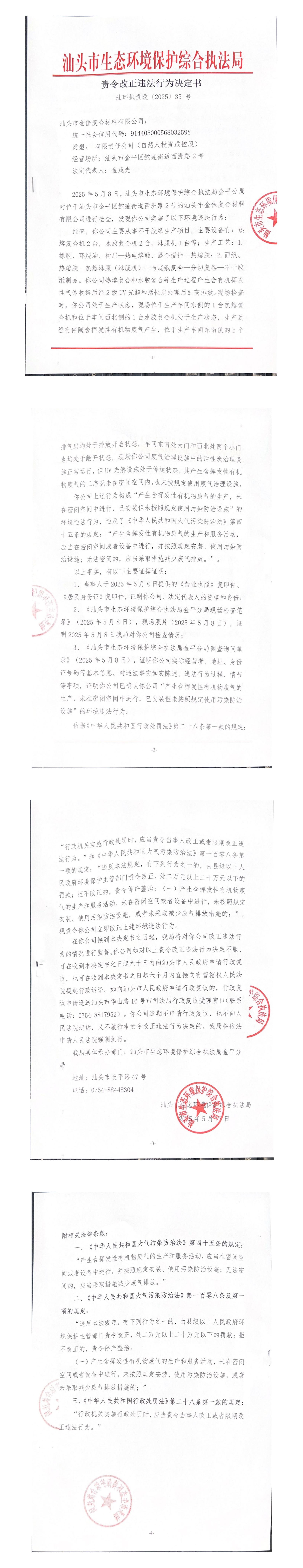 【金平】责令改正违法行为决定书(汕环执责改〔2025〕35号)