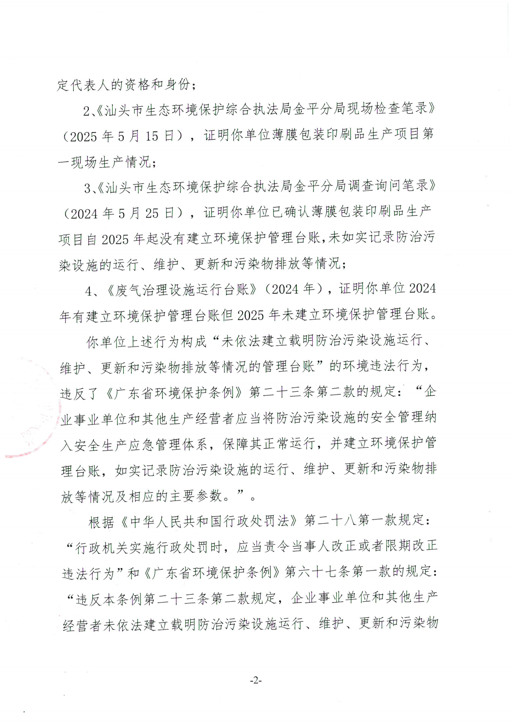 【金平】责令改正违法行为决定书(汕环执责改〔2025〕45号)