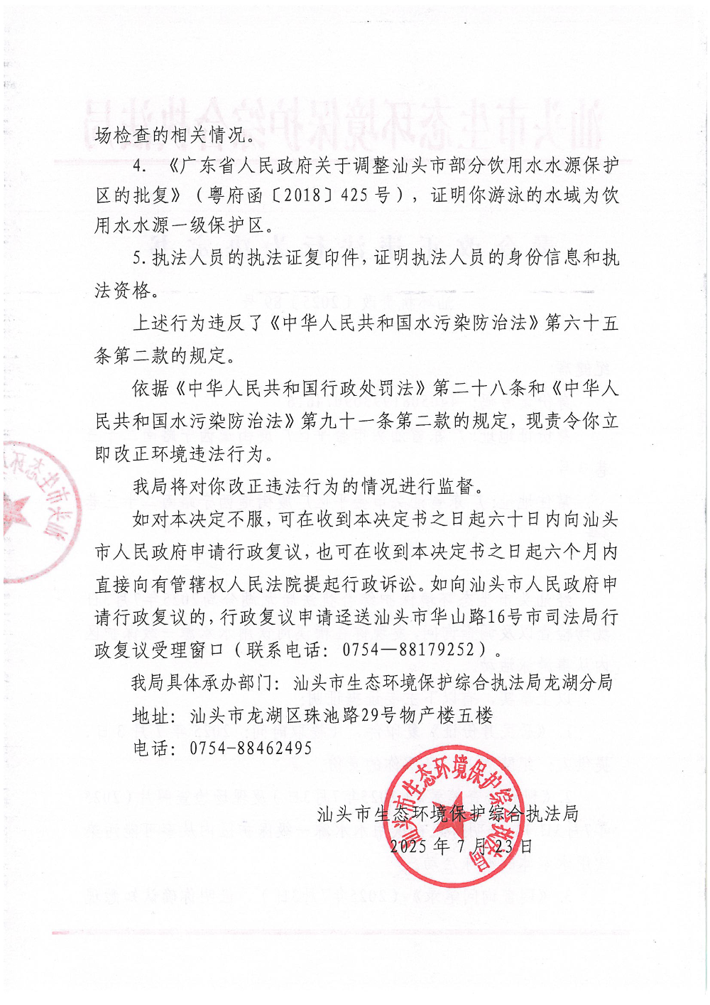 【龙湖】责令改正违法行为决定书(汕环执责改〔2025〕89号)