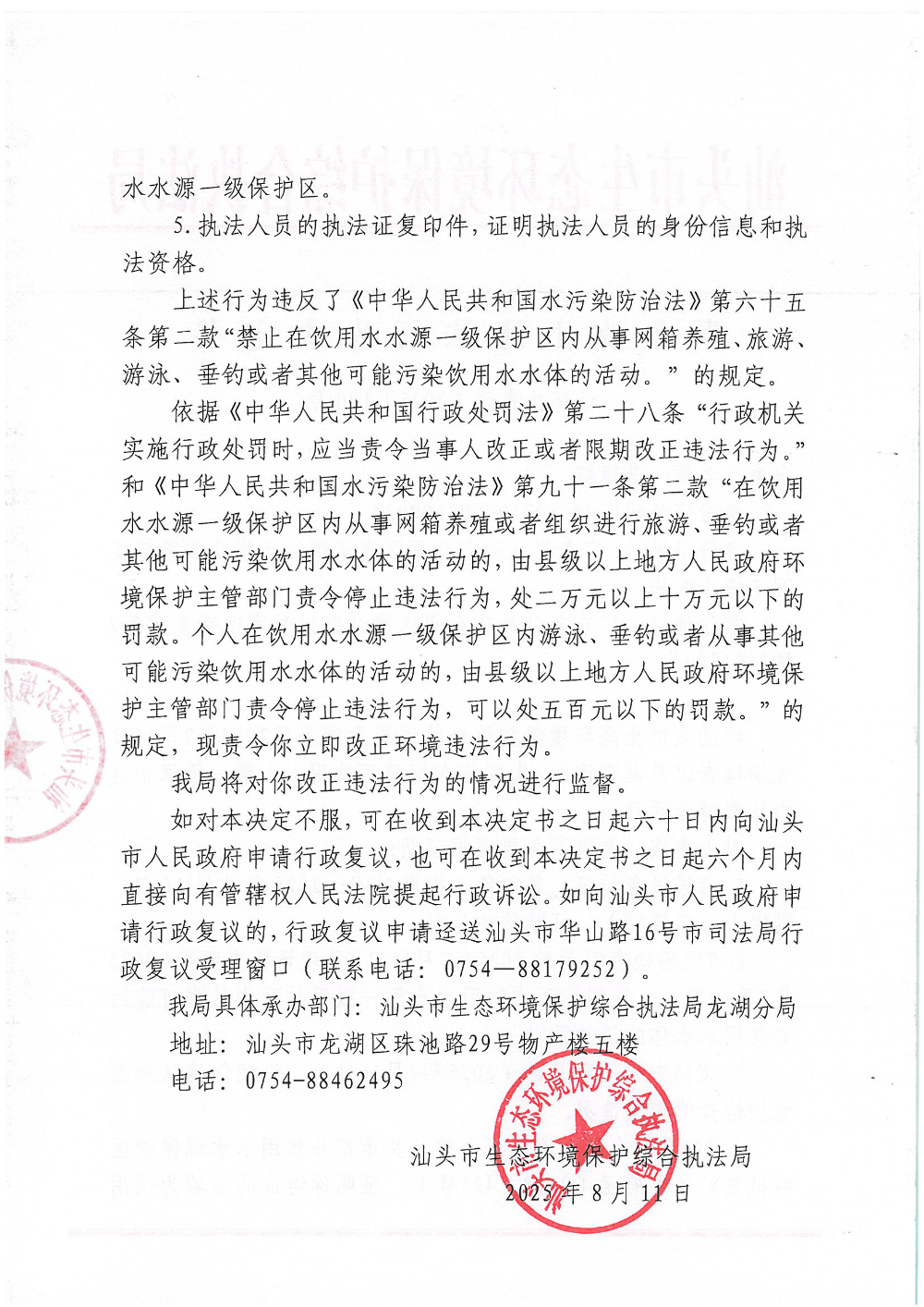 【龙湖】责令改正违法行为决定书(汕环执责改〔2025〕100号)