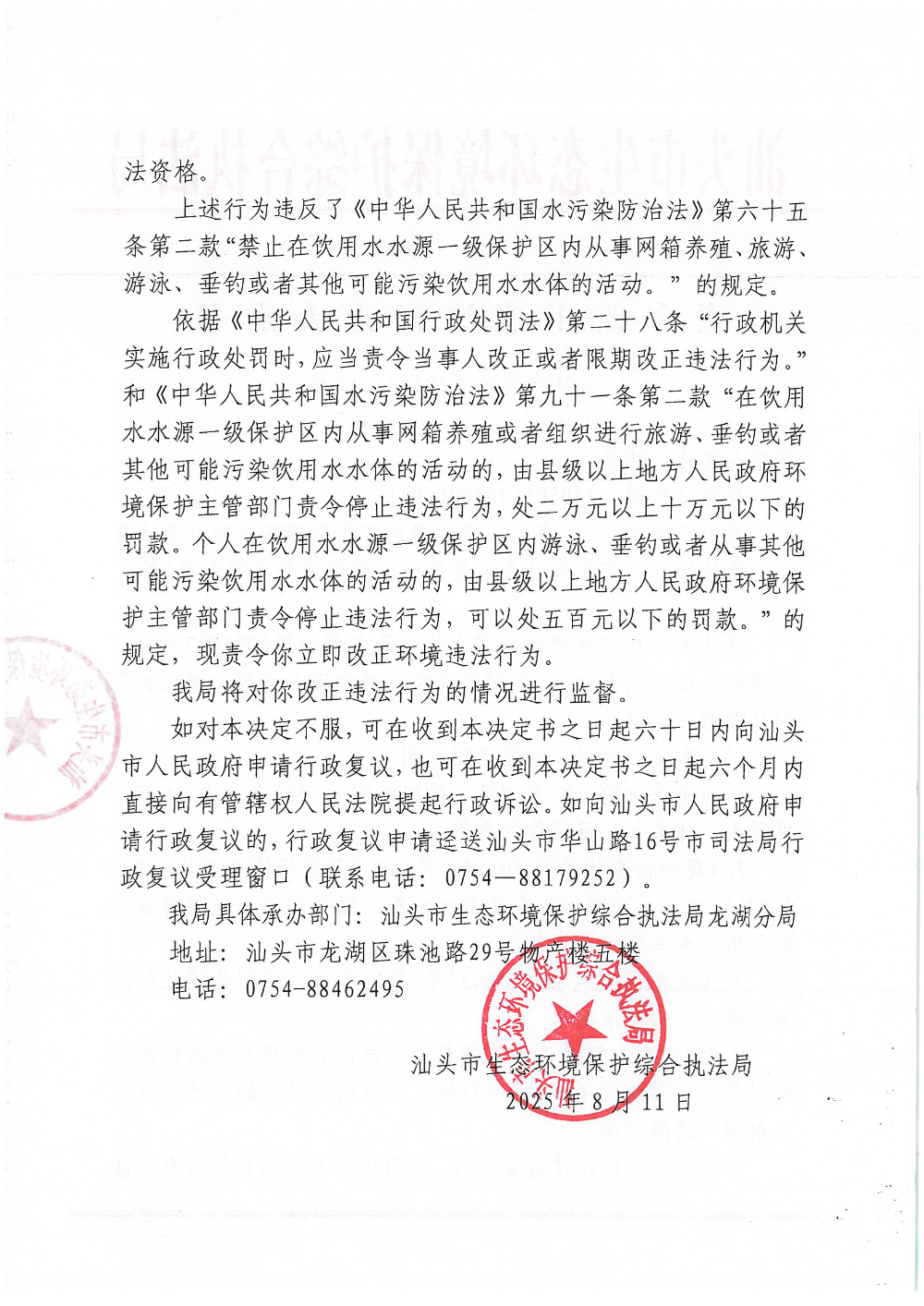 【龙湖】责令改正违法行为决定书(汕环执责改〔2025〕102号)