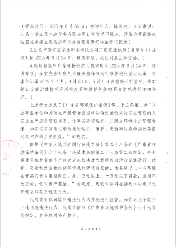 【濠江】责令改正违法行为决定书(汕环执责改〔2025〕87号)