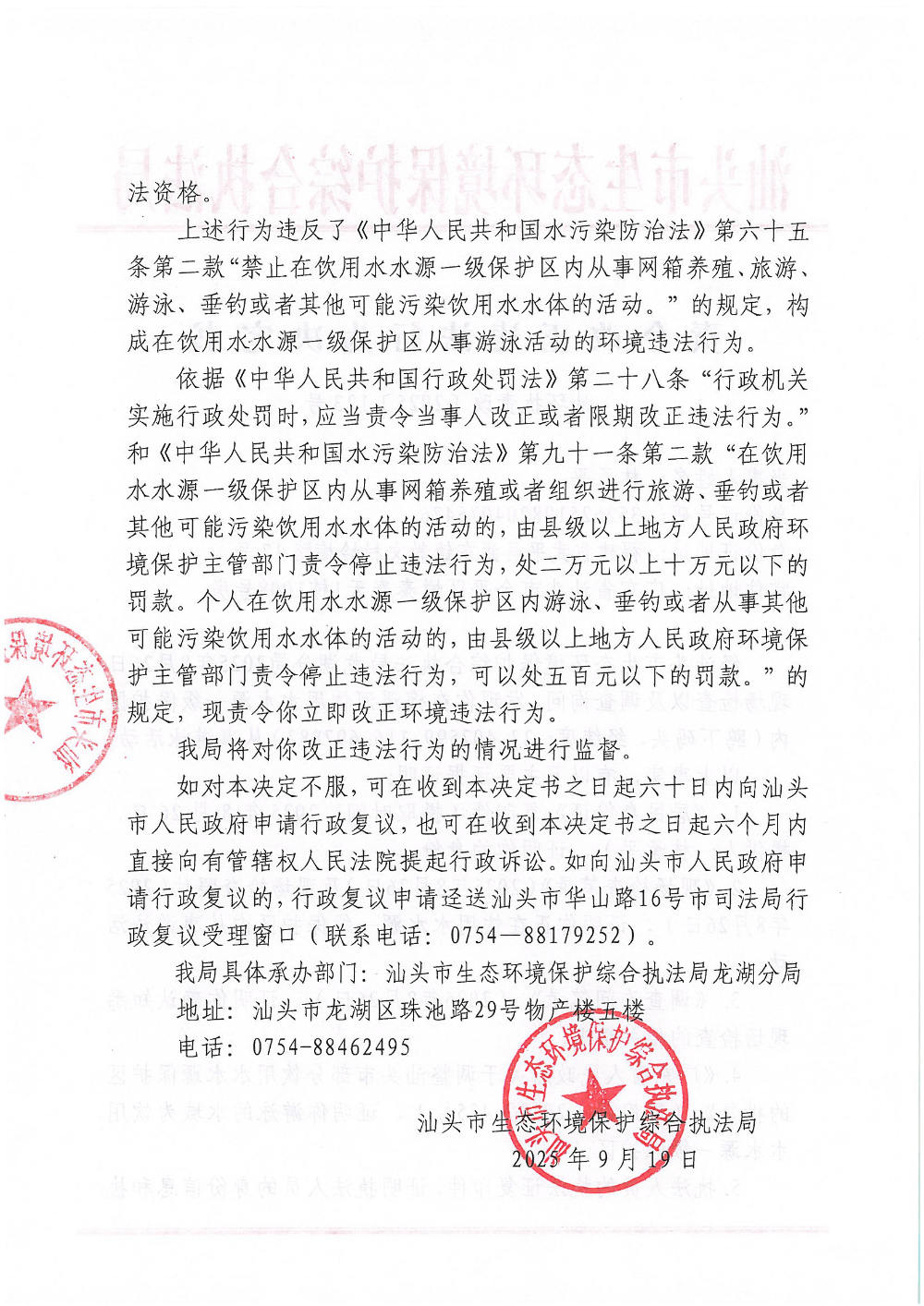 【龙湖】责令改正违法行为决定书(汕环执责改〔2025〕123号)