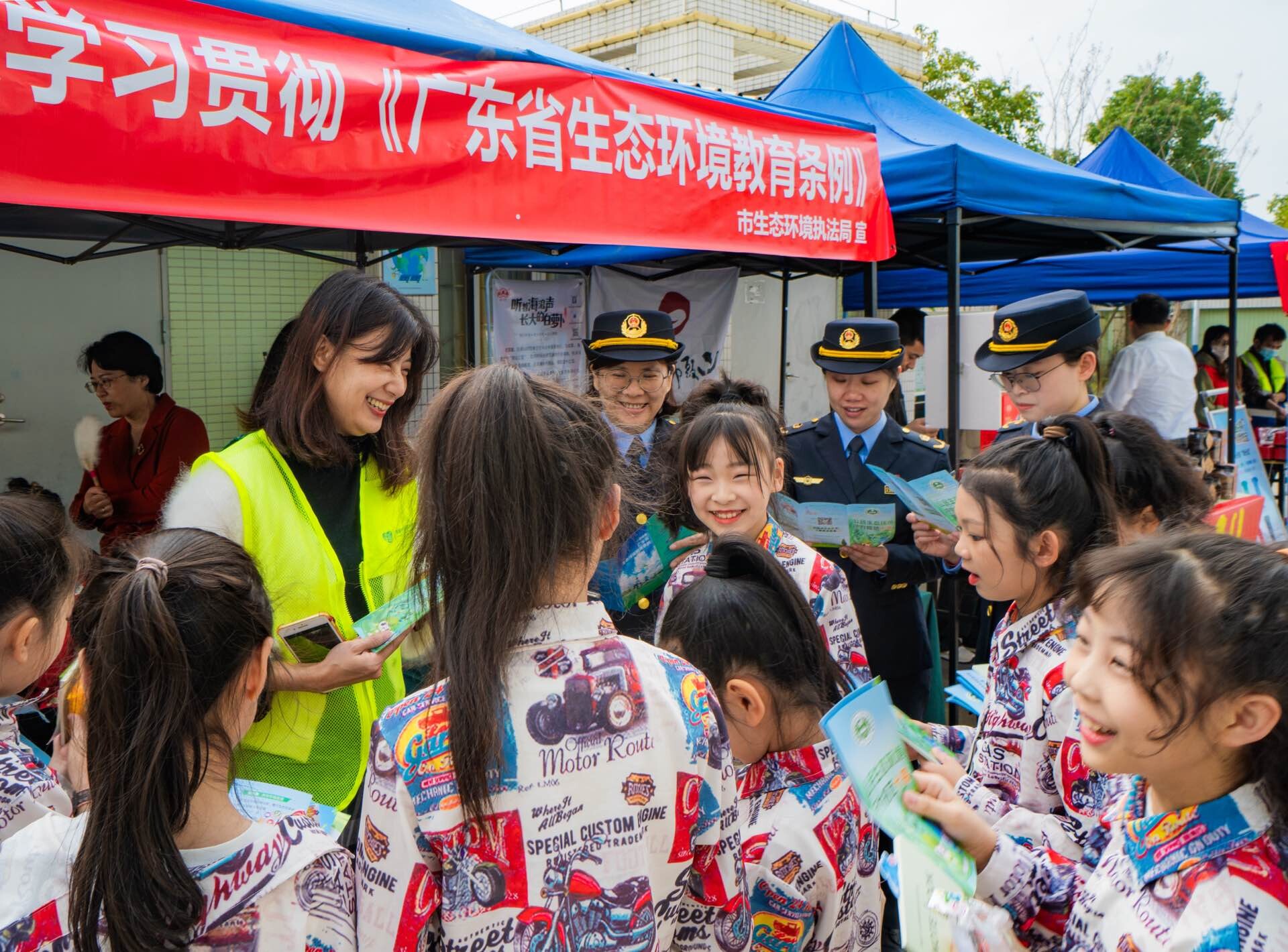 活动现场设置了普法宣传条幅、展板和法律咨询台,通过发放普法宣传资料和宣传册、现场政策解读宣讲、进行互动小游戏等形式,开展生态环境普法宣传进社区、进学校、进商户活动,向当地学生、过往居民、周边商铺宣传《中华人民共和国民法典》、《广东省生态环境教育条例》、《广东省安全生产条例》、生活垃圾分类等法律法规知识。党员、生态环境普法志愿者们以身边看似微不足道的生活“小事情”讲好生态文明、诚信文明“大道理”,充分利用基层社区“小阵地”发挥生态文明法治“大作用”,积极引导社会大众关爱生态环境,绿色低碳生活,分类投放垃圾,减少污染产生,鼓励社会大众积极举报身边破坏生态环境的不法行为,依法行使生态环境合法权利、履行保护生态环境义务,倡导诚信守信,约束自身行为规范,当好建设绿美汕头的推动者、践行者,争当“百千万工程”的参与者、建设者。