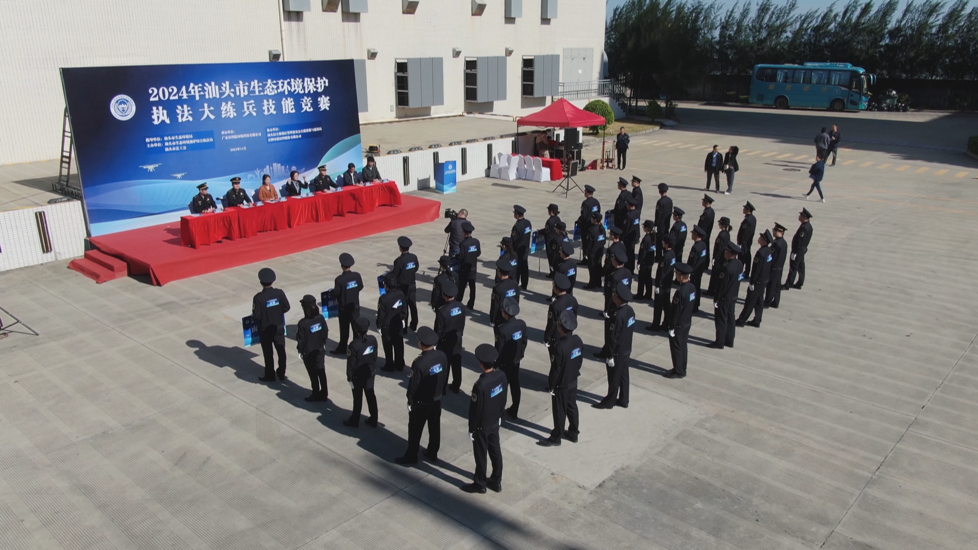 “2024年汕头市生态环境执法大练兵技能竞赛活动正式开始!”随着市生态环境执法局党组书记、局长吴林同志的一声令下,来自全市7个分局的35名选手展开激烈角逐,各显身手。本次实战比武分理论知识竞赛、无人机操作和运用、在线监控检查、非现场巡查及笔录制作等四个环节,紧跟生态环境部数智赋能非现场执法方向,旨在强化执法人员的科技意识和科技运用能力,促进科技装备、科技手段在生态环境执法领域的应用和普及。理论知识抢答环节中,随着抢答器的一声声提报声响起,选手们你追我赶,争相答题,现场气氛紧张而热烈;无人机操作和运用环节中,参赛队伍展现出非凡的技艺,灵巧地操纵无人机在空中穿梭,查找并识别二维码;在线监控检查环节中,各参赛人员在水、大气在线监测房对采样口以及自动检测设施进行排查,对异常数据逐一排查记录。各分局执法人员在比武切磋中角逐专业技能,比拼精神风貌。