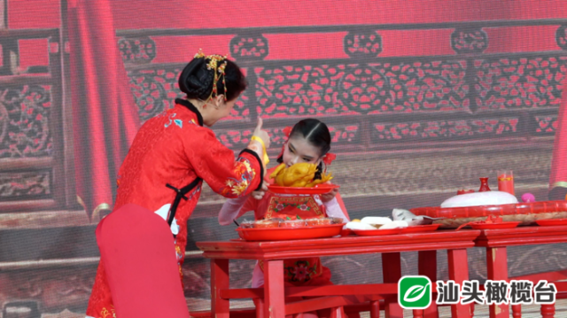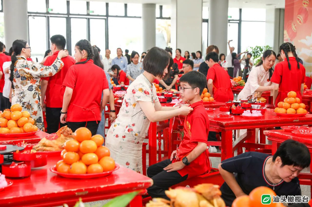 据悉,此次活动由市政府新闻办、市文明办、市文化广电旅游体育局、市侨务局、市教育局、濠江区委区政府联合主办,汕头联泰集团赞助支持,市关工委、市妇联、市投资控股集团有限公司协办。现场的“出花园”仪式由情景表演和民俗传承两部分组成。孩子们在“出花园”市级非遗传承人蔡静燕指导下,穿上红木屐,依次完成了沐浴更衣礼、感恩礼、跳胶掠、“头彩食”仪式、步出花园门等环节,完成了“出花园”这项传统成人礼俗。
