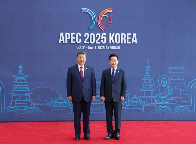 当地时间10月31日上午,亚太经合组织第三十二次领导人非正式会议第一阶段会议在韩国庆州和白会议中心举行。国家主席习近平出席会议并发表题为《共建普惠包容的开放型亚太经济》的重要讲话。习近平抵达会场时,韩国总统李在明热情迎接。新华社记者 黄敬文 摄