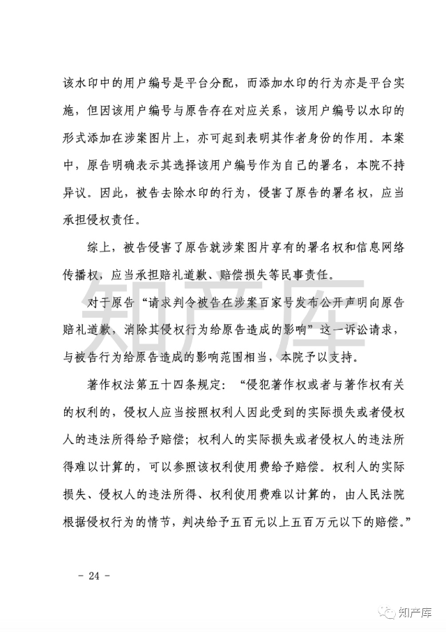 5.关于著作权的认定:“原告是直接根据需要对涉案人工智能模型进行相关设置,并最终选定涉案图片的人,涉案图片是基于原告的智力投入直接产生,且体现出了原告的个性化表达,故原告是涉案图片的作者,享有涉案图片的著作权。”