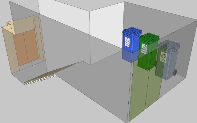 2.可在储存室或其他合理区域设置可回收物、有害垃圾暂存点。可回收物暂存点可以与有害垃圾暂存点共同设置,暂存点设置因地制宜,大小、位置不作统一要求。