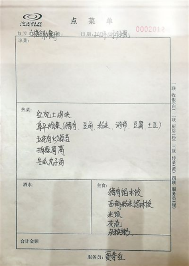 习近平总书记2012年考察河北省阜平县时的晚餐菜单(复制件)。