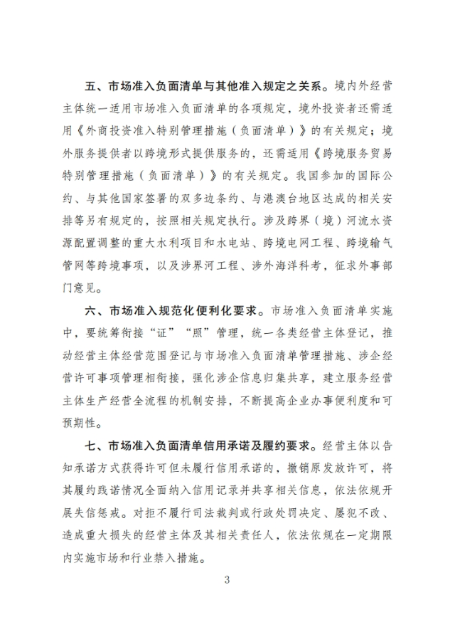 国家发展改革委体制改革综合司副司长表示,清单之外,各类经营主体,无论是国资还是民资,无论是大企业还是中小微企业,都可以依法平等进入,政府不得在清单之外违规设置准入障碍。